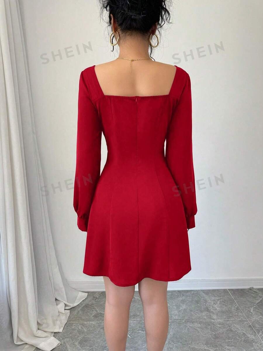 Vestido de mujer con cuello cuadrado y cintura anudada en unicolor