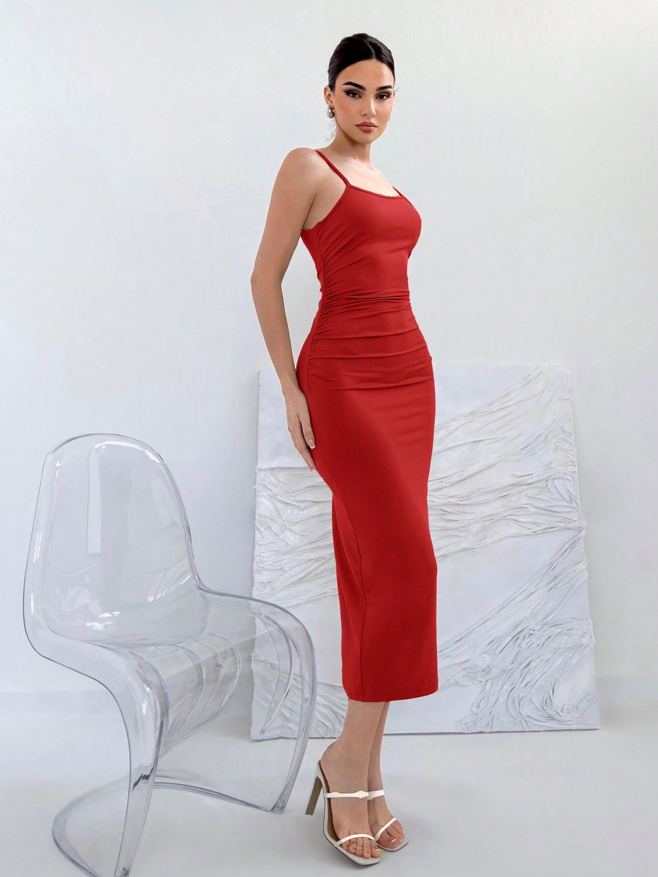 Vestido ajustado de cuello cruzado fruncido bajo con fruncido
