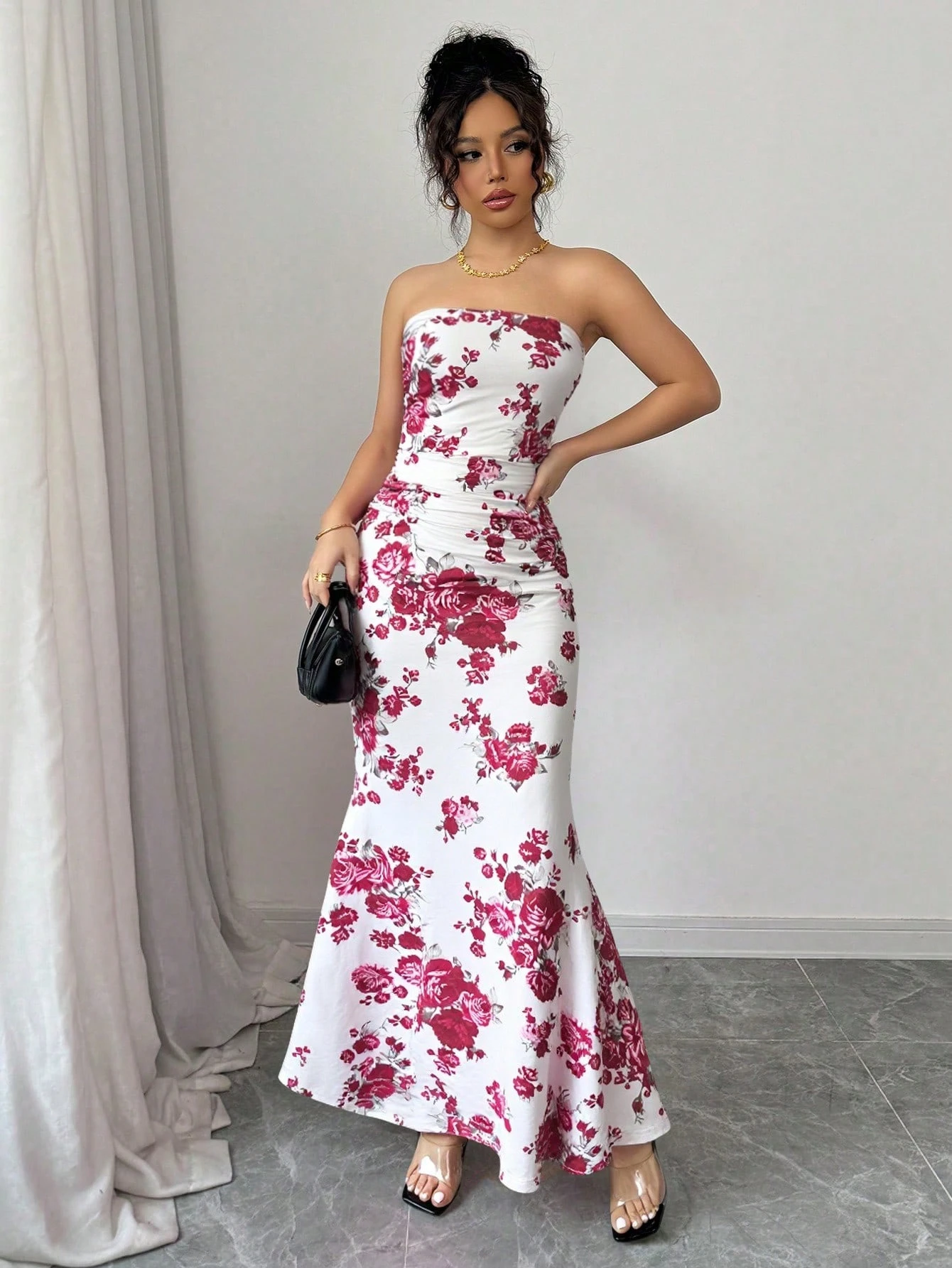 Vestido de mujer de estampado floral elegante all-over