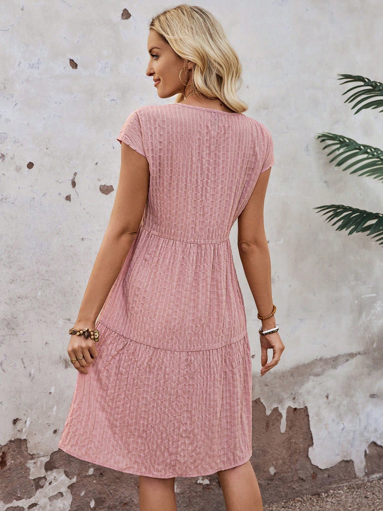 Vestido Camisero De Manga Corta De Verano De Cintura Alta