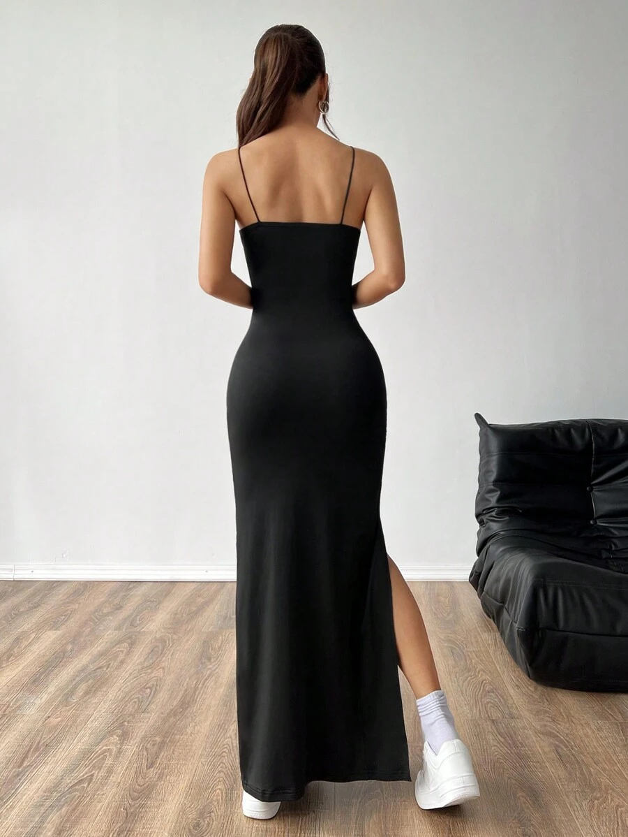 Vestido de mujer de tirantes con espaguetis y abertura alta en un solo color