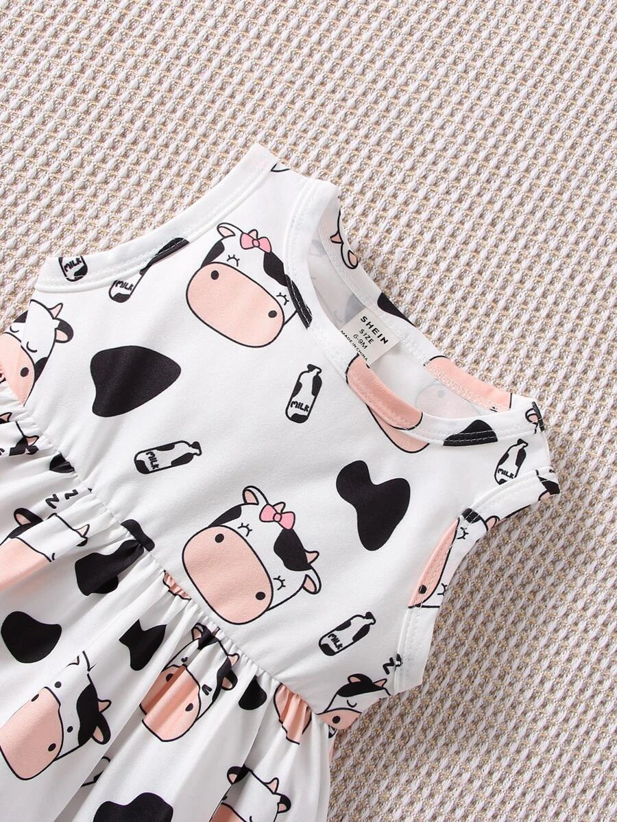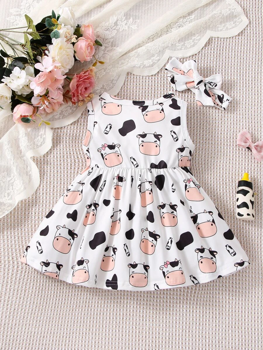 Vestido De Niña Con Diseño De Vaca Y Cinta