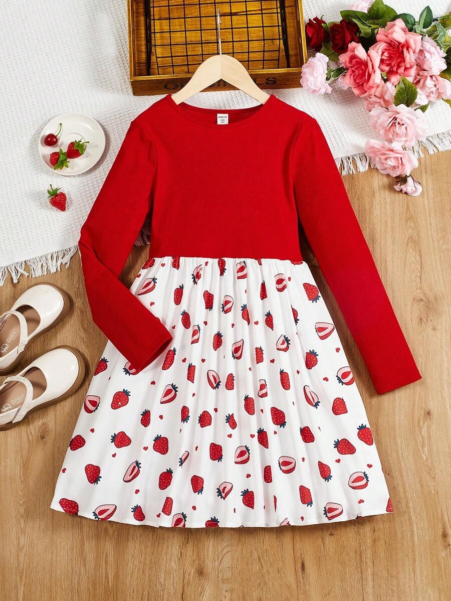 Vestido De Ni?a Con Estampado De Corazones, Volante En El Bajo Y Adornos Decorativos