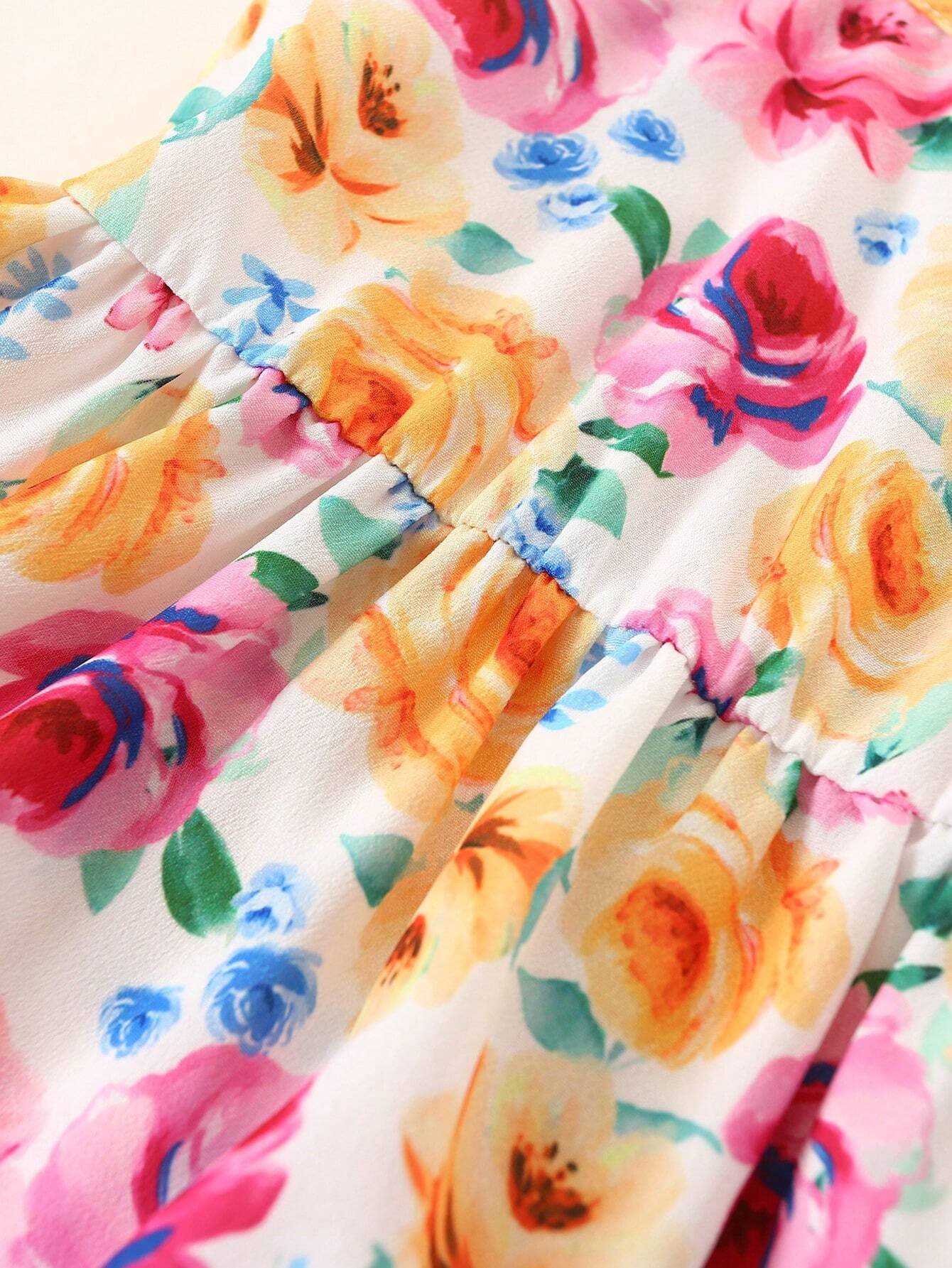 Vestido De Ni?a De Beb? Con Correas De Espagueti Con Estampado Floral Lindo