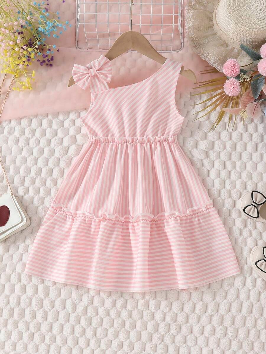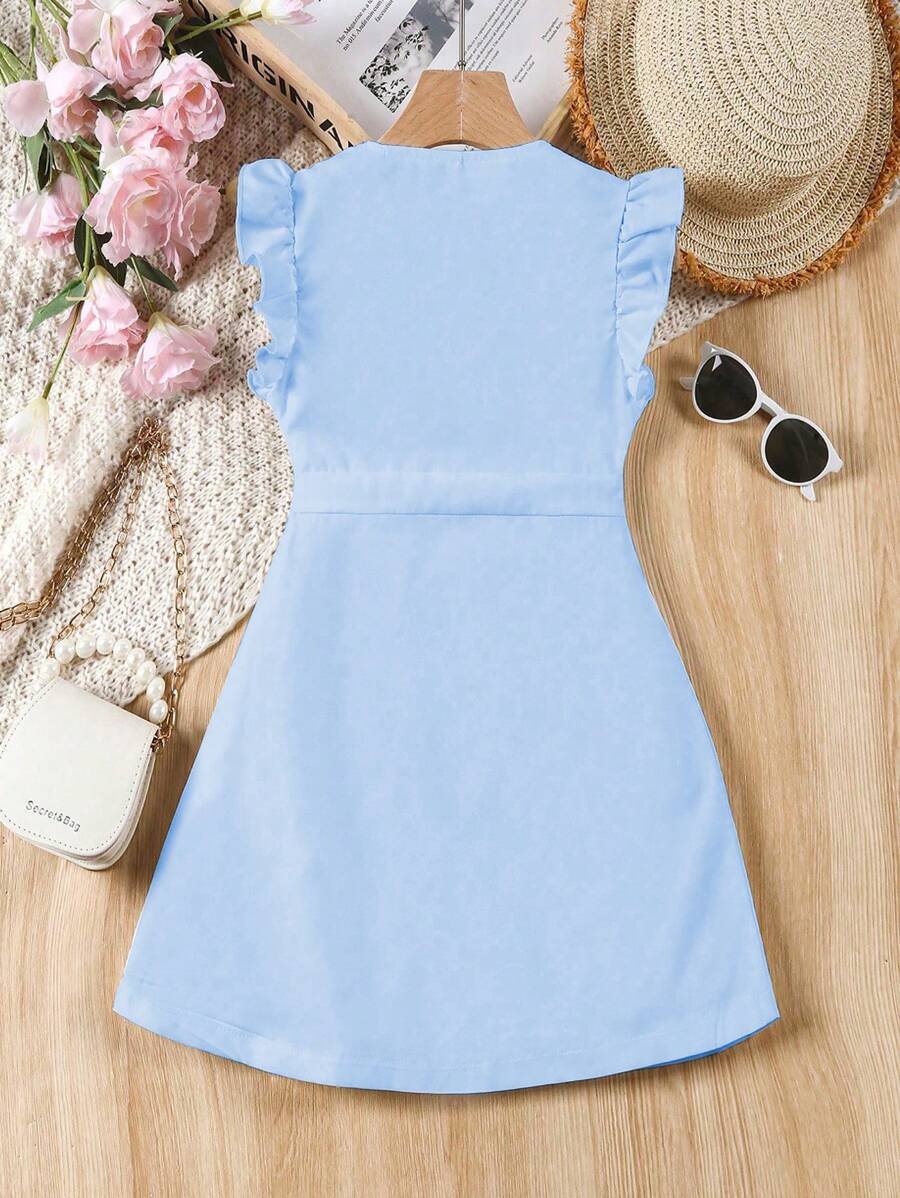 Vestido de niña joven de color liso elegante con mangas con volantes