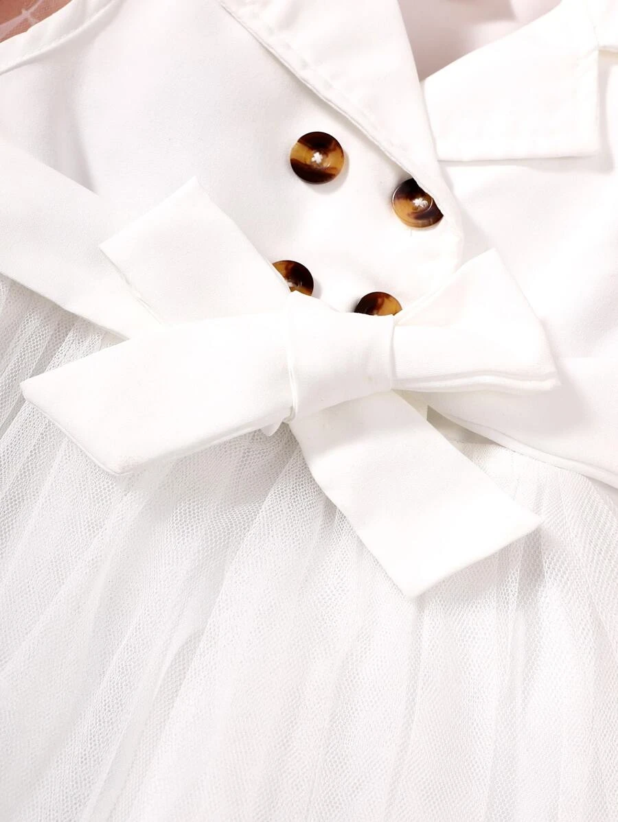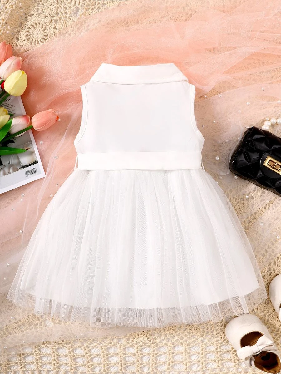 Vestido De Ni?a Peque?a Con Doble Bot?n, Cintur?n Y Dobladillo De Malla