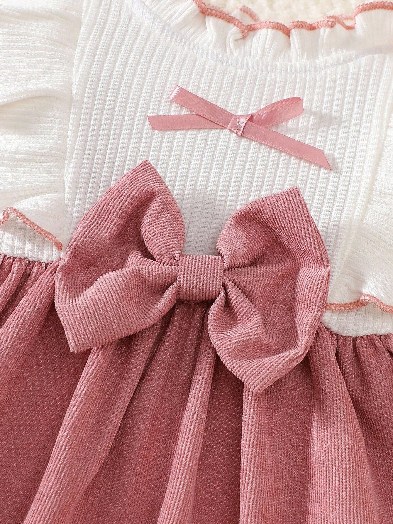 Vestido de niña recién nacida de manga larga blanco con cuello de encaje