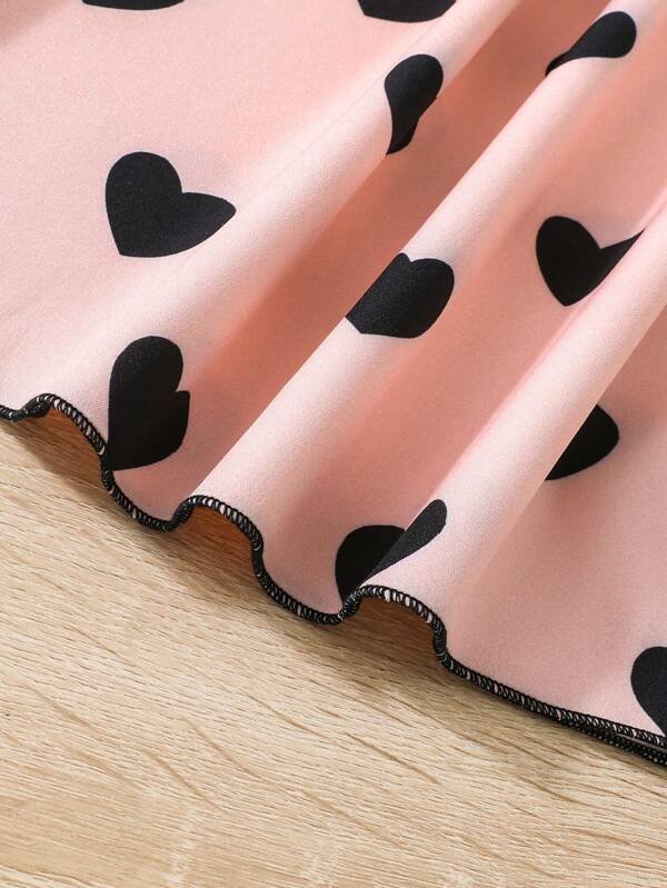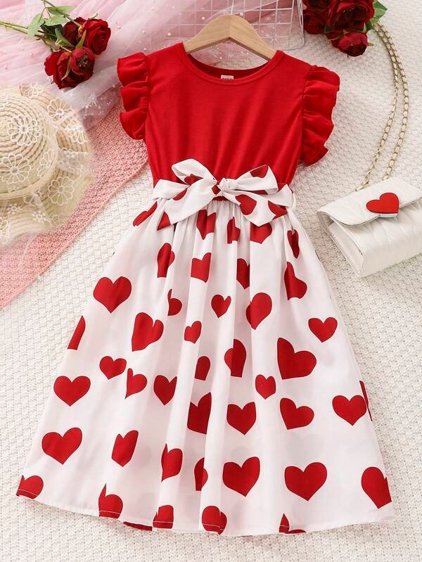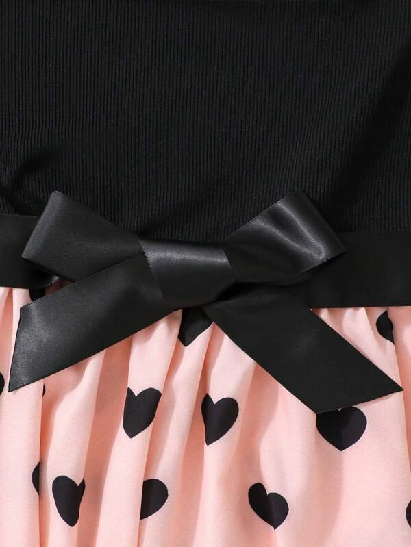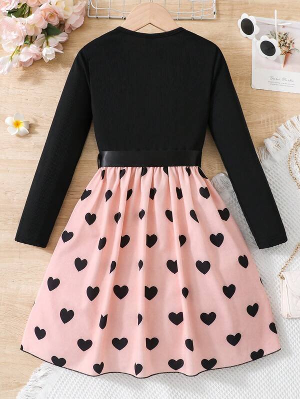Vestido De Patchwork Con Estampado De Corazones De Color Liso Para Ni?as Preadolescentes