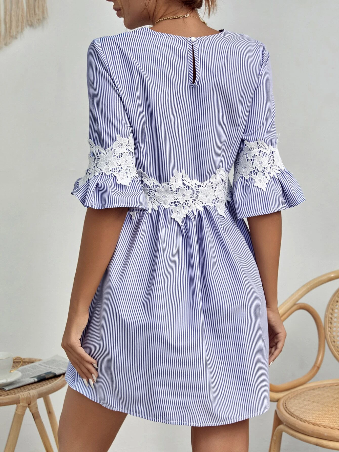 Producto anterior Siguiente producto Vestido de rayas con encaje en contraste de manga con volante SKU: sw2204256512185536 Categoría: Vestidos Este producto no está disponible porque no quedan existencias. Descripción Información adicional Descripción