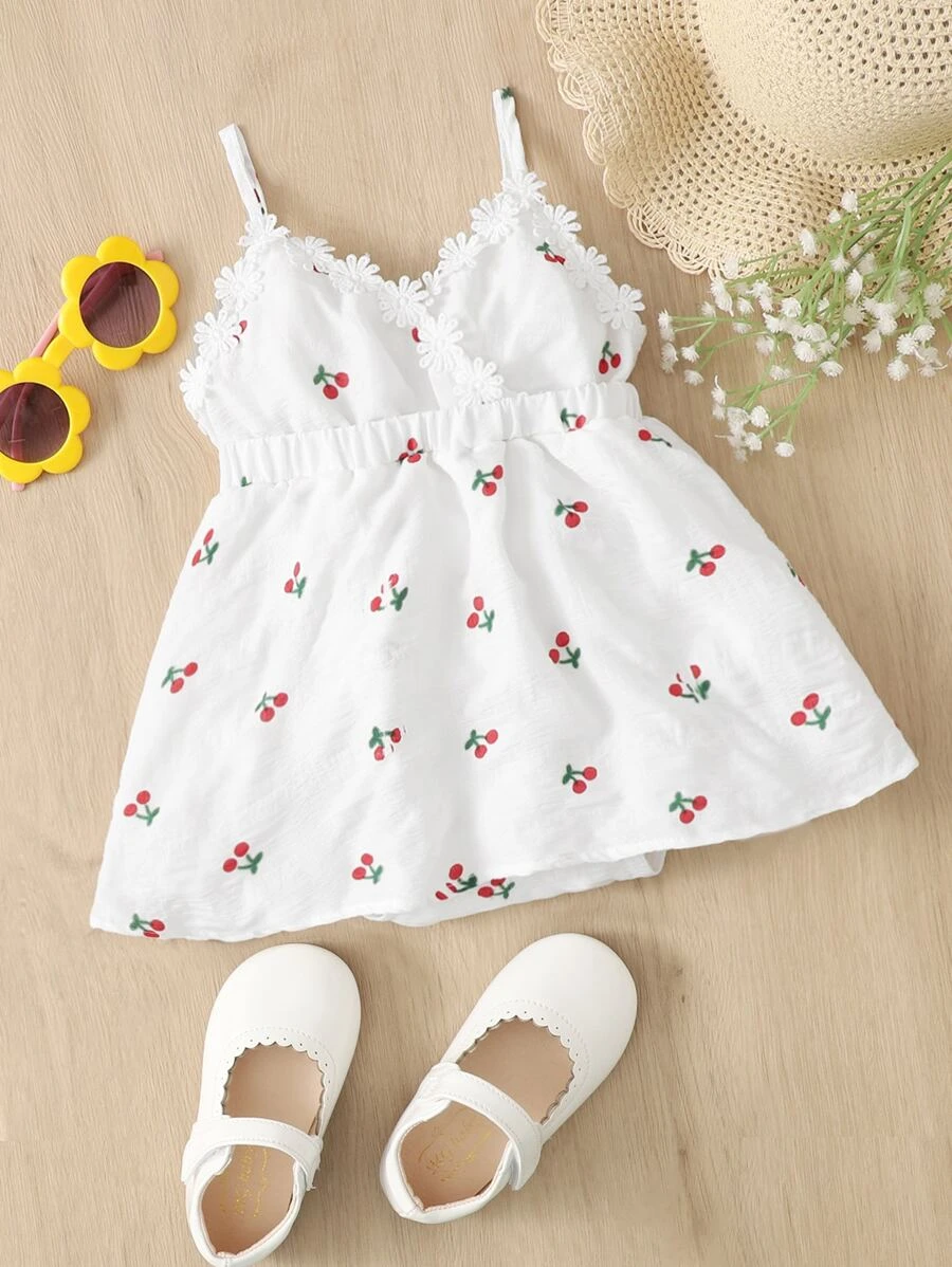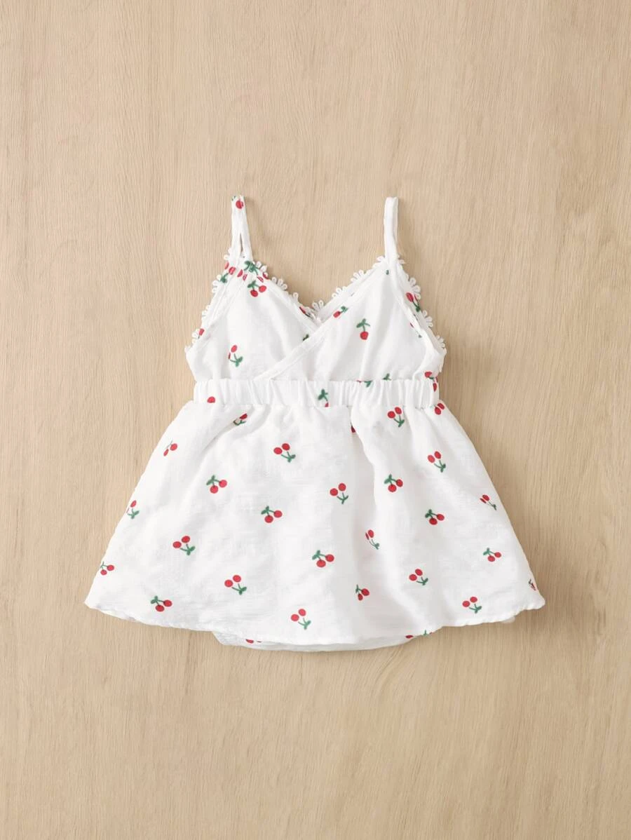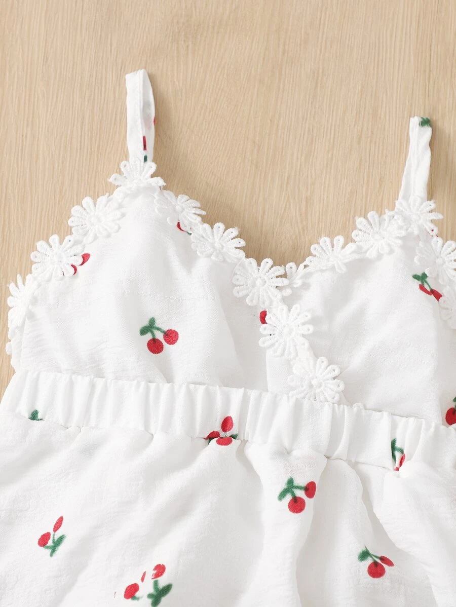 Vestido de tirantes aplique con estampado de cereza