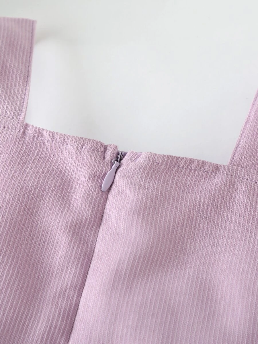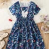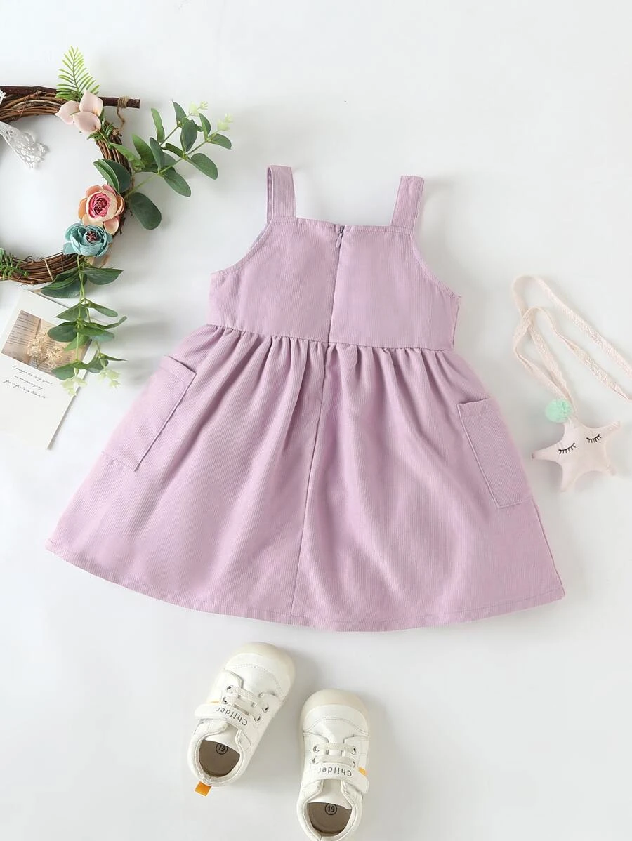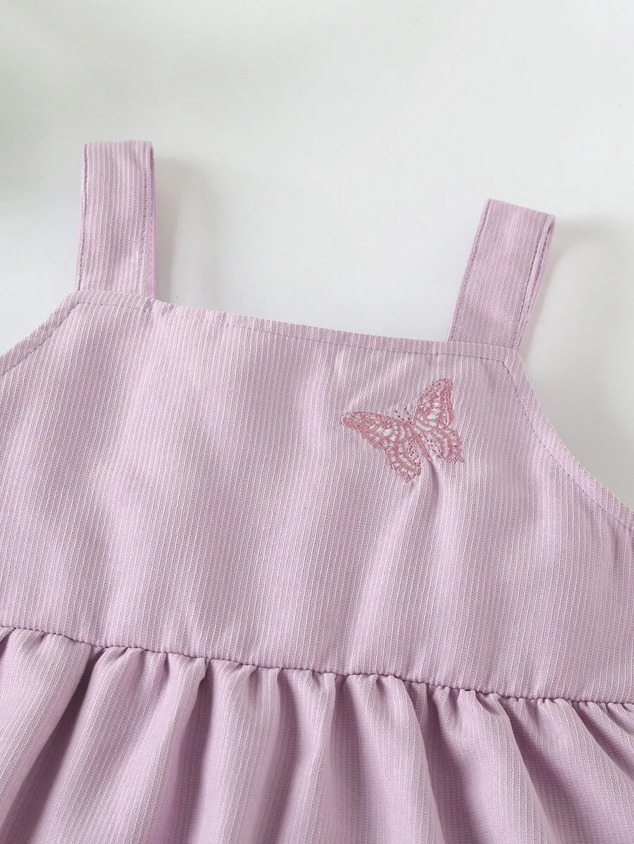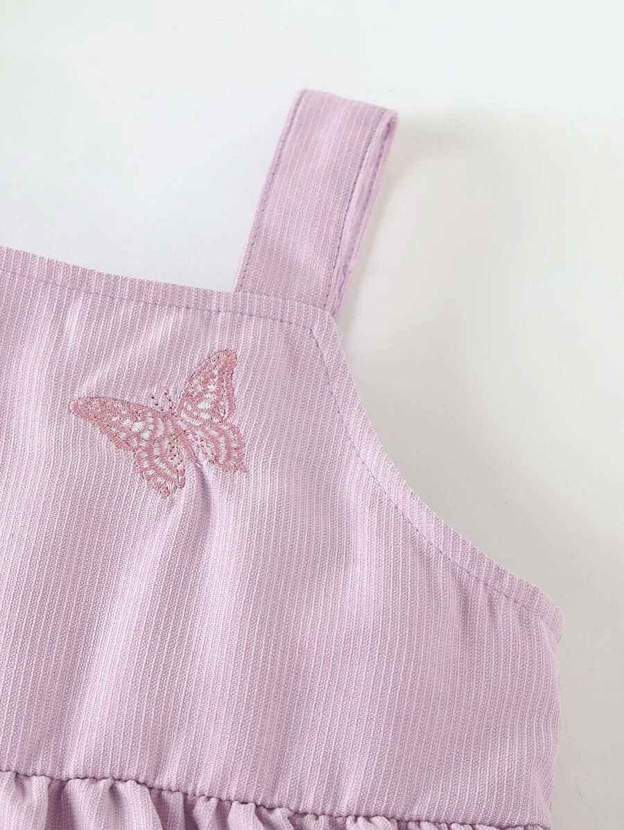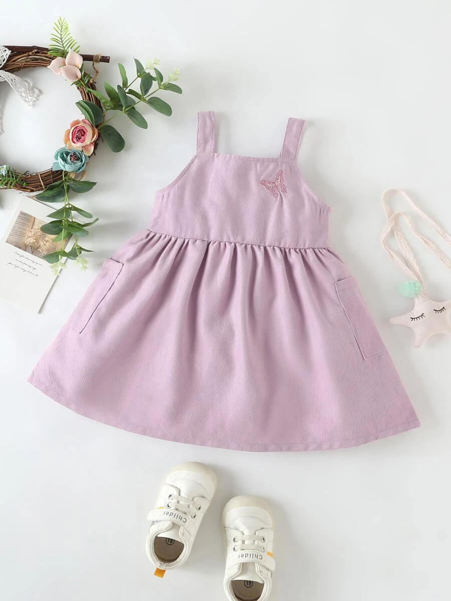 Vestido de tirantes con bordado de mariposa con doble bolsillos