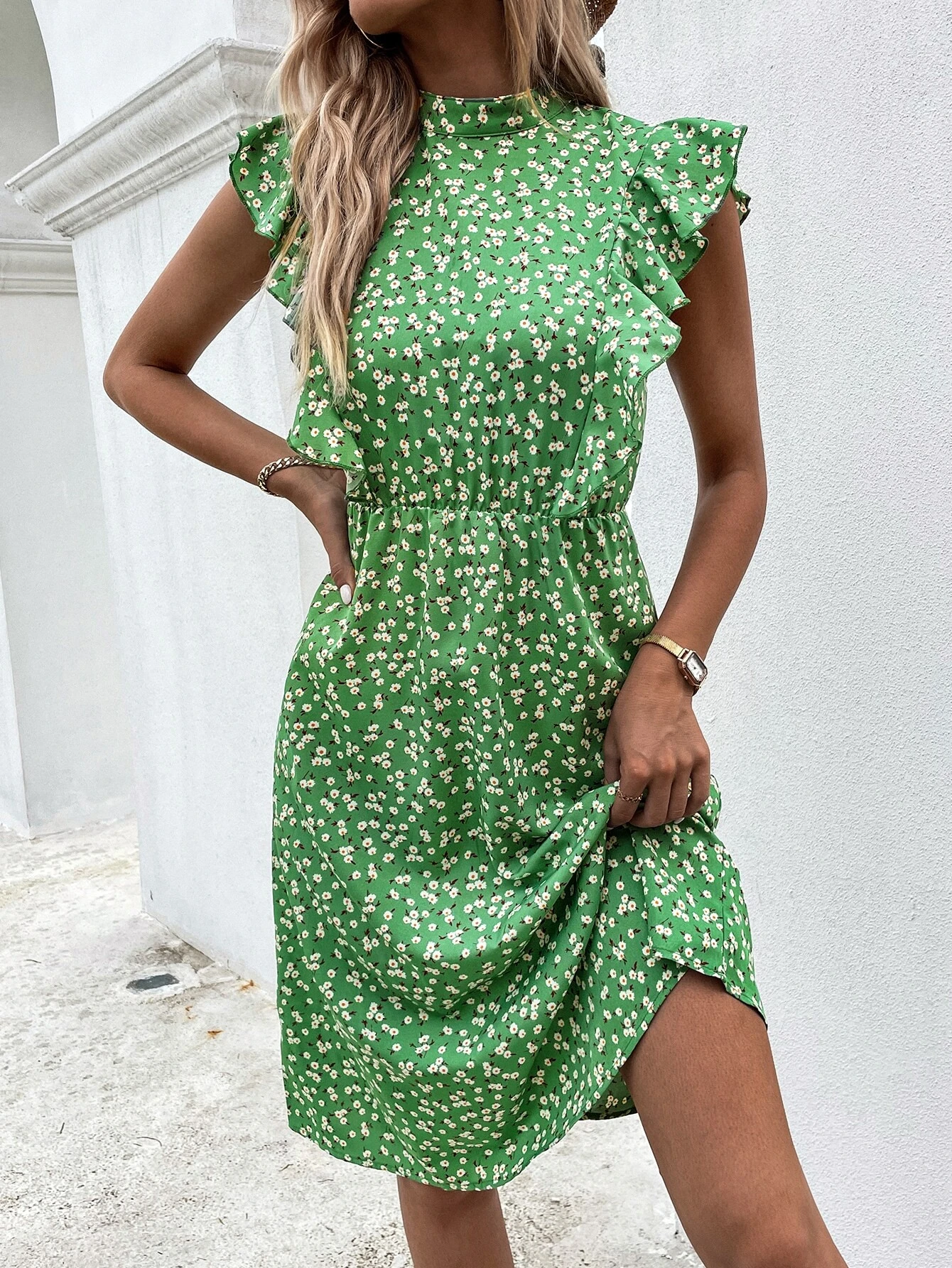 Vestido de tirantes con dise?o aplique de malla en contraste