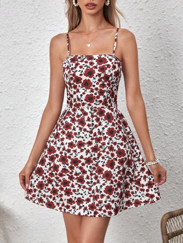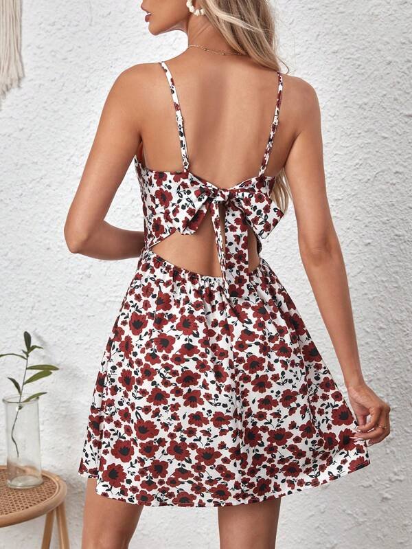 Vestido de tirantes con estampado floral de espalda abierta con cord?n