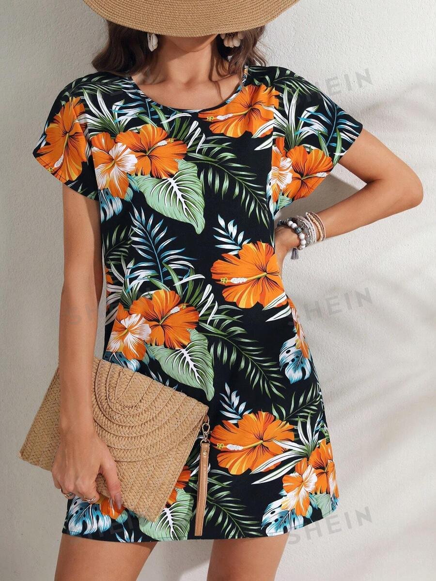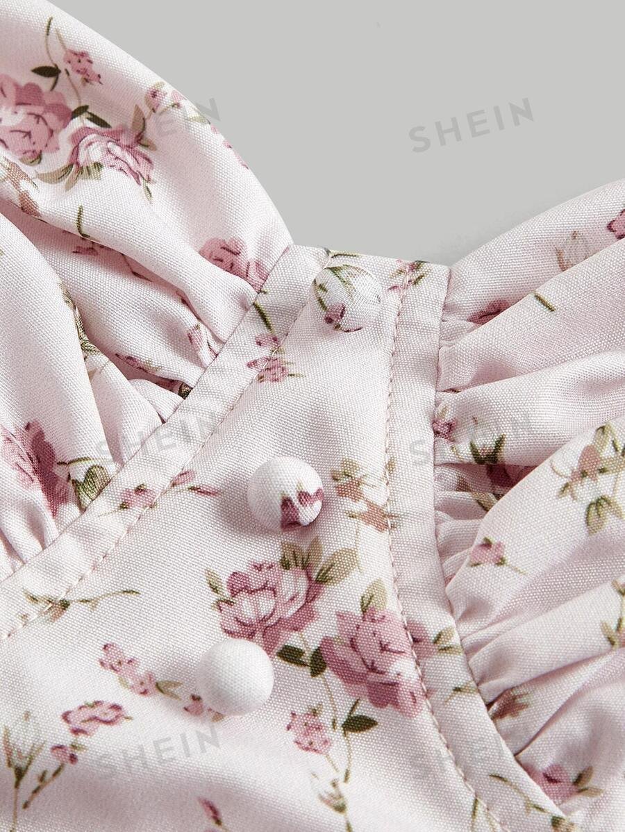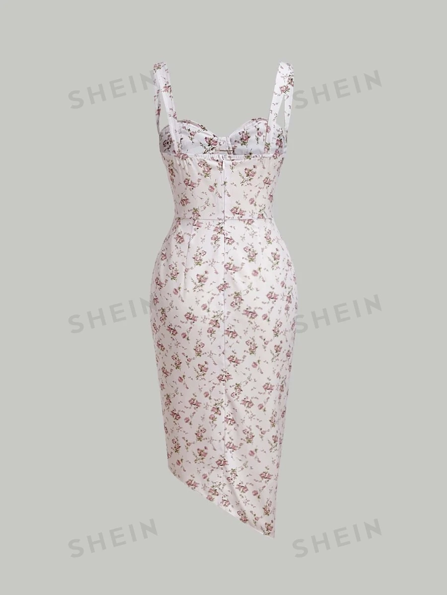 Vestido de tirantes con estampado floral fruncido bajo asim?trico