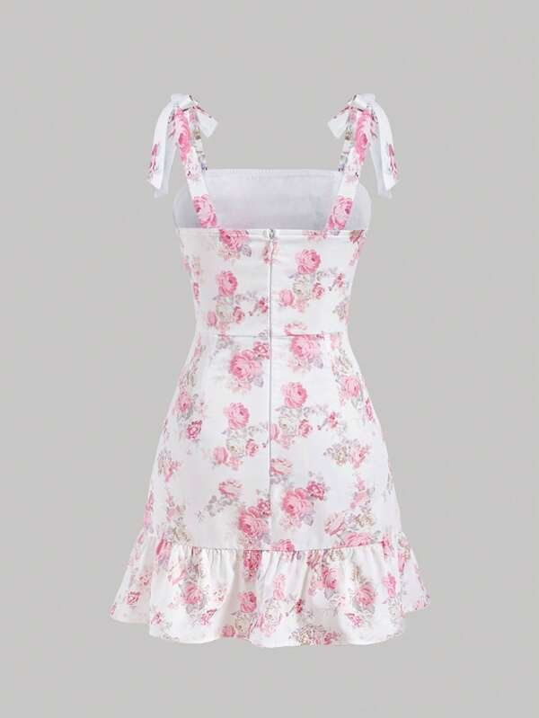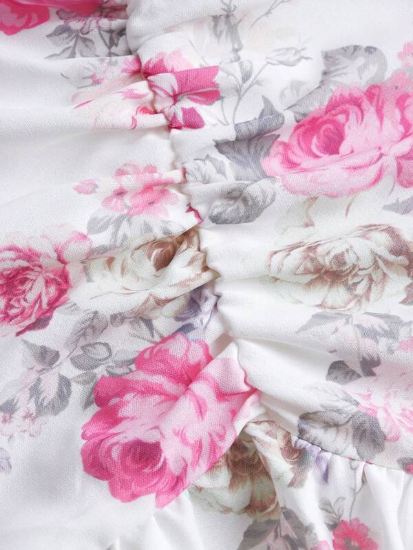 Vestido de tirantes con estampado floral fruncido bajo con fruncido