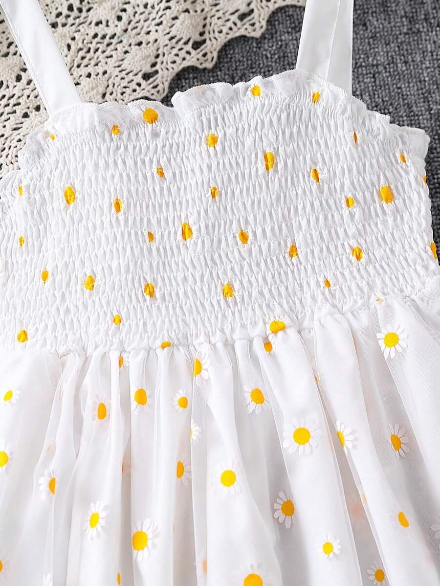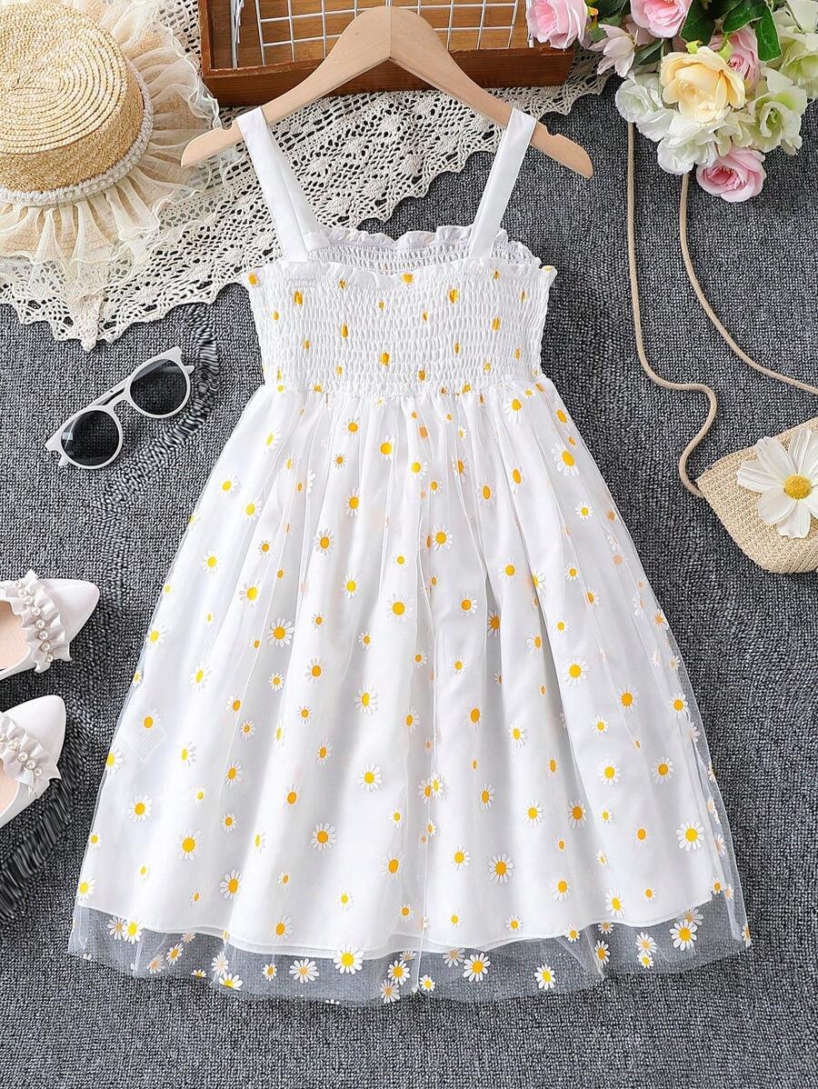 Vestido De Tirantes Con Panel De Volantes Superpuesto De Malla Bordada Floral