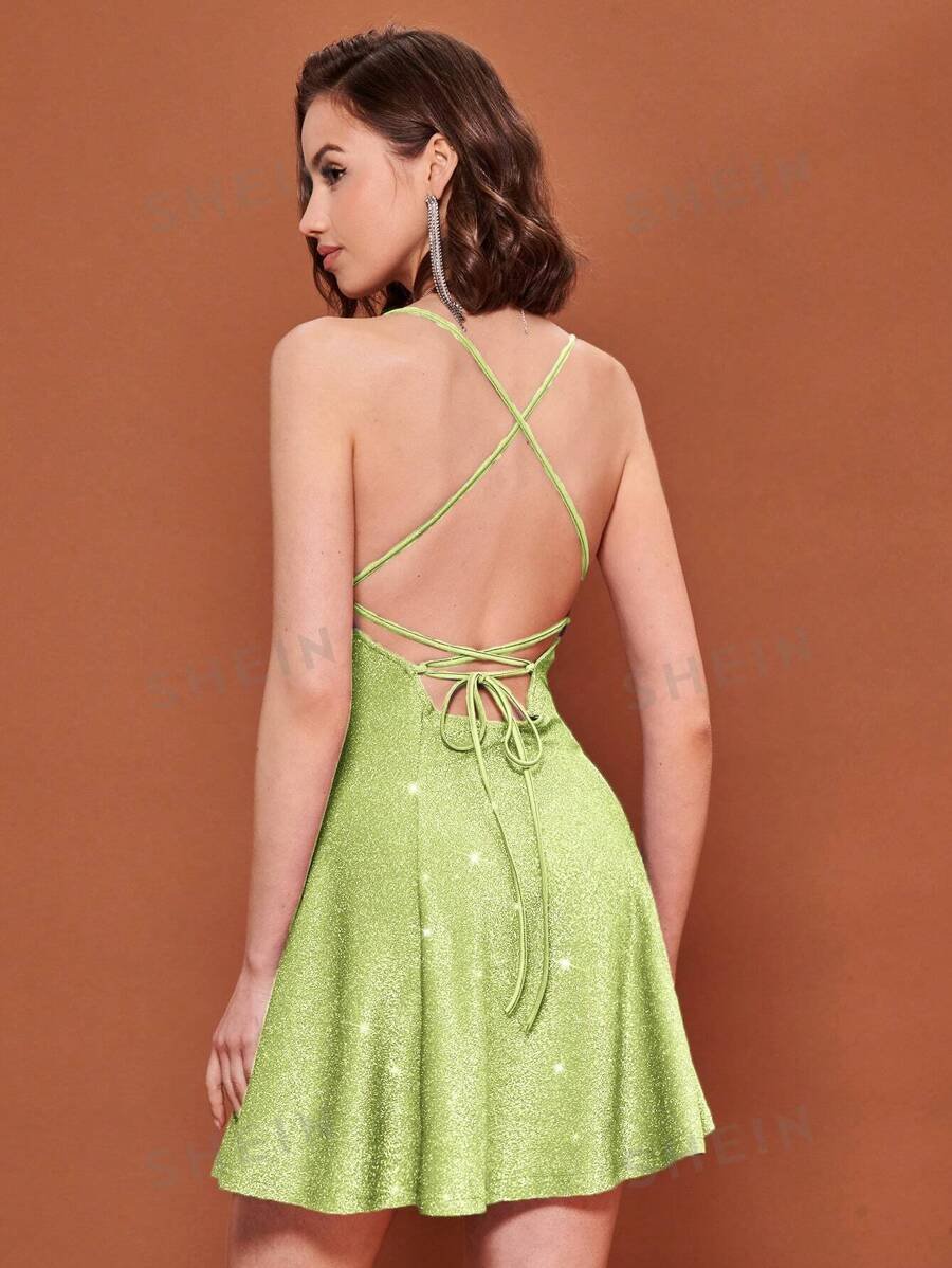 Vestido de tirantes de espalda abierta con cord?n brillante
