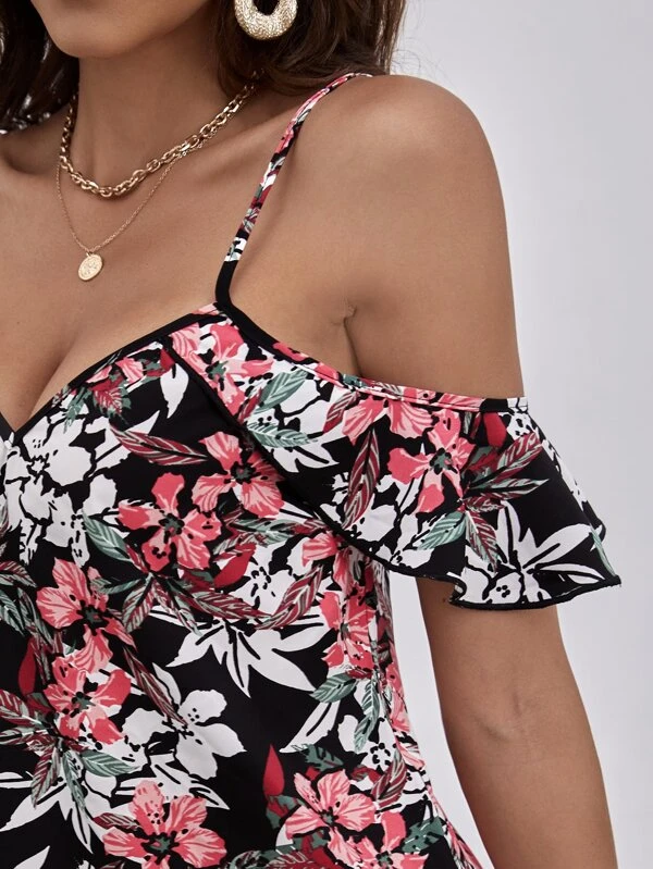 Vestido de tirantes de hombros descubiertos con estampado floral