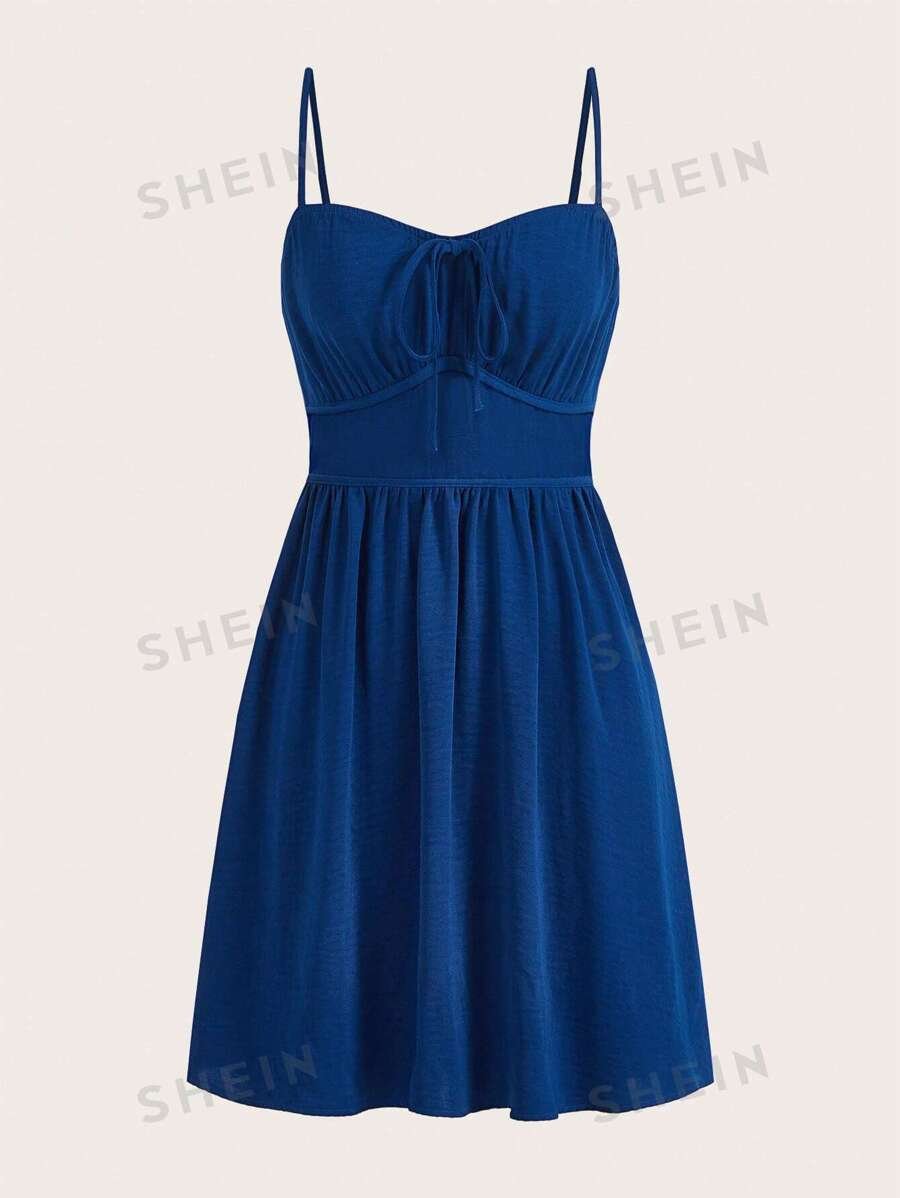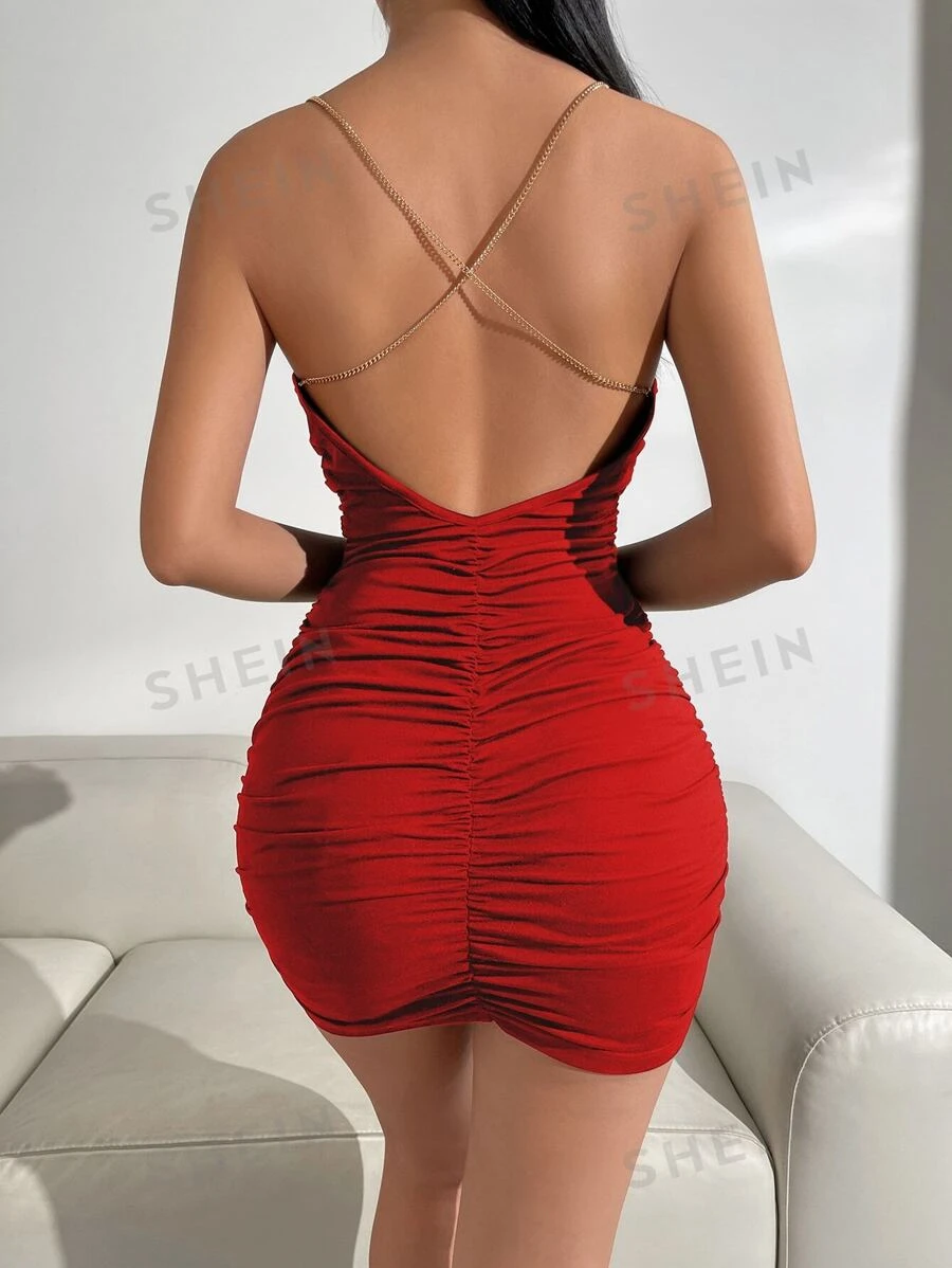Vestido de tirantes escote drapeado con diseno de cadena de espalda abierta con tira cruzada fruncido