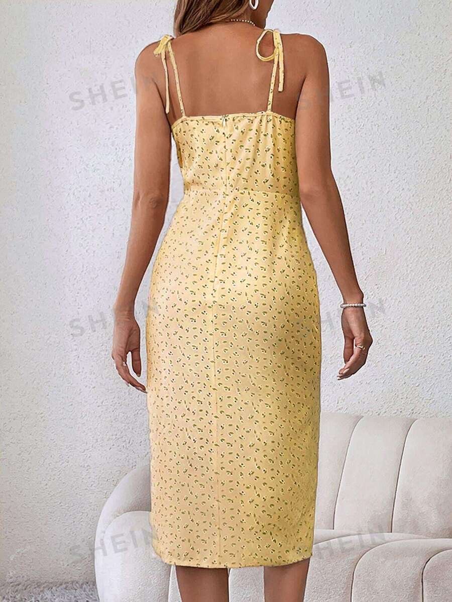 Vestido de tirantes floral de hombros con cordón de muslo con abertura