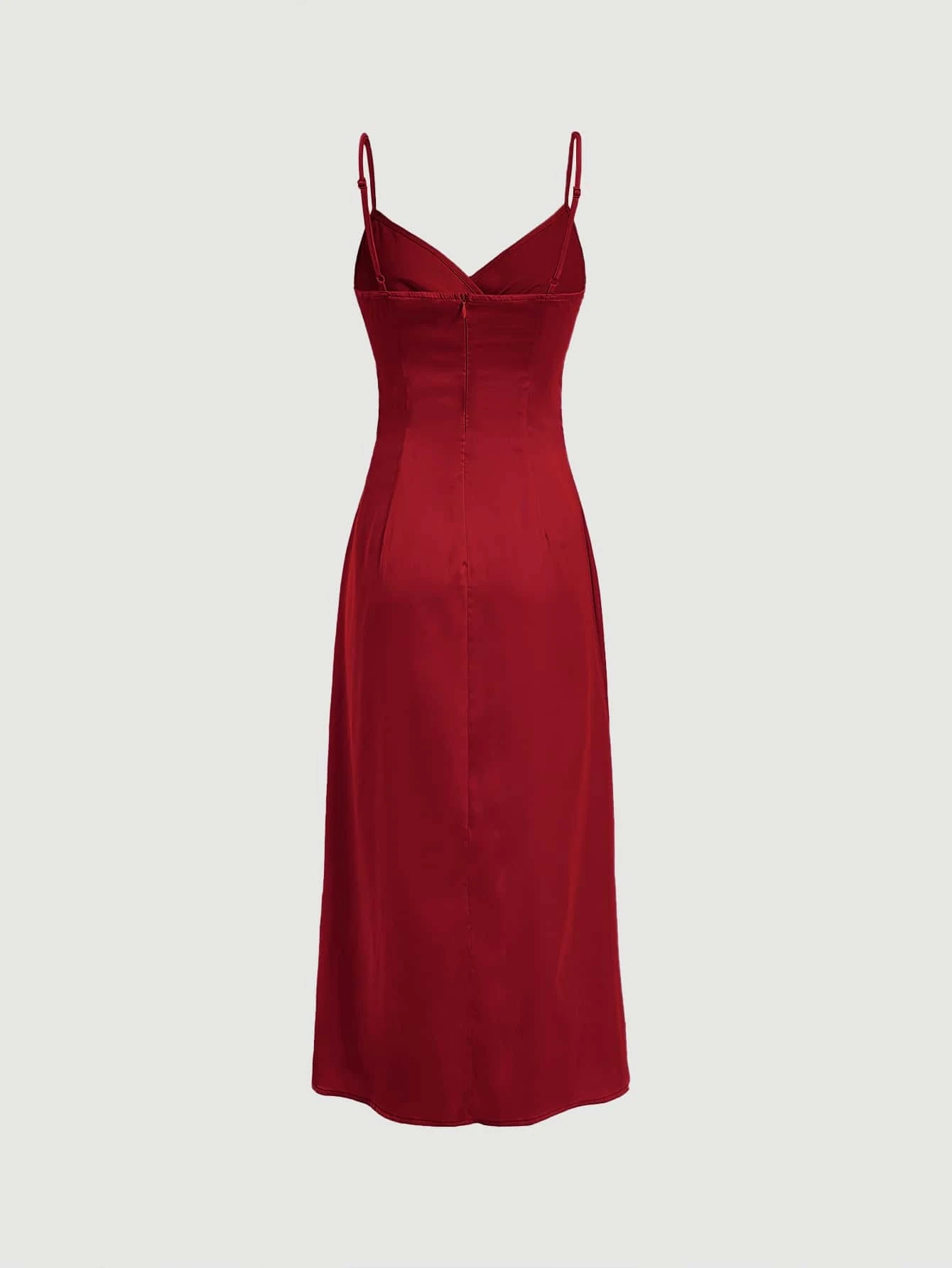 Vestido de tirantes unicolor con bot?n de muslo con abertura
