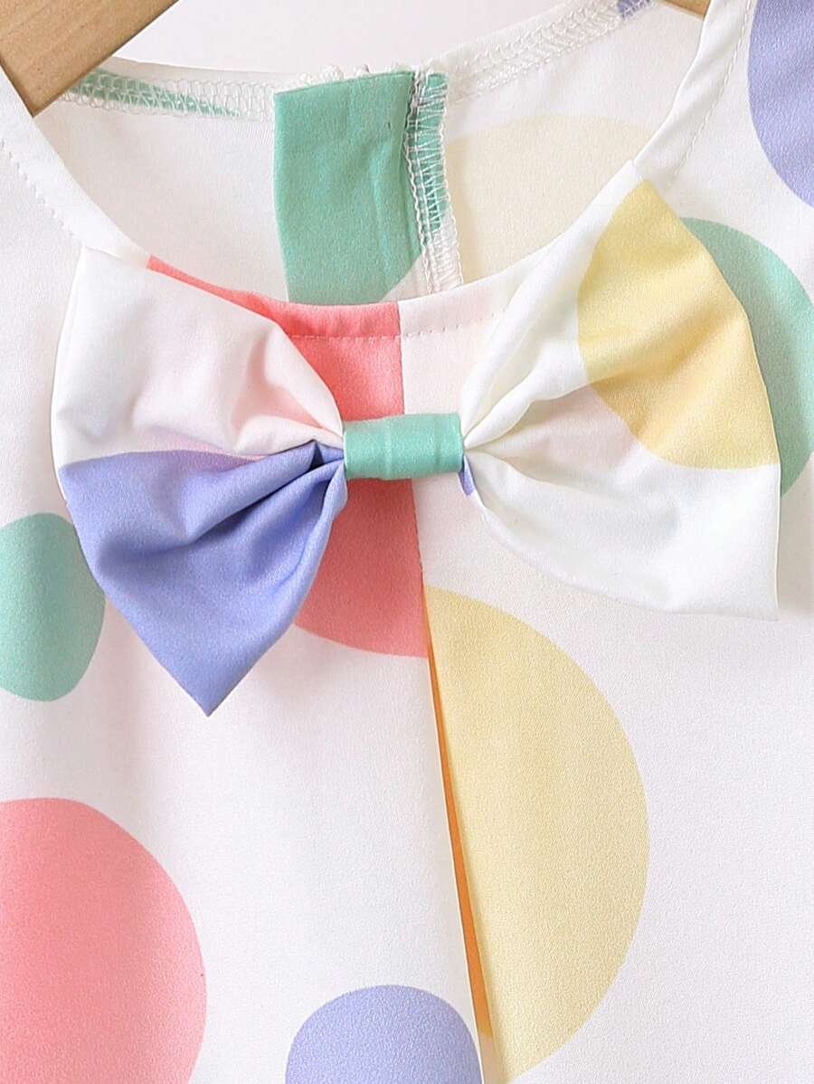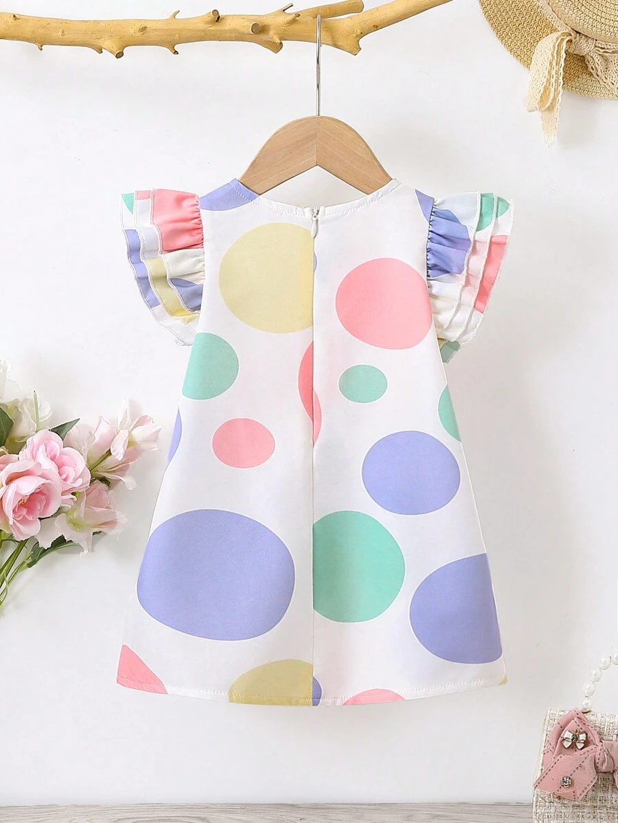 Vestido de tres capas con mangas onduladas con estampado de lunares