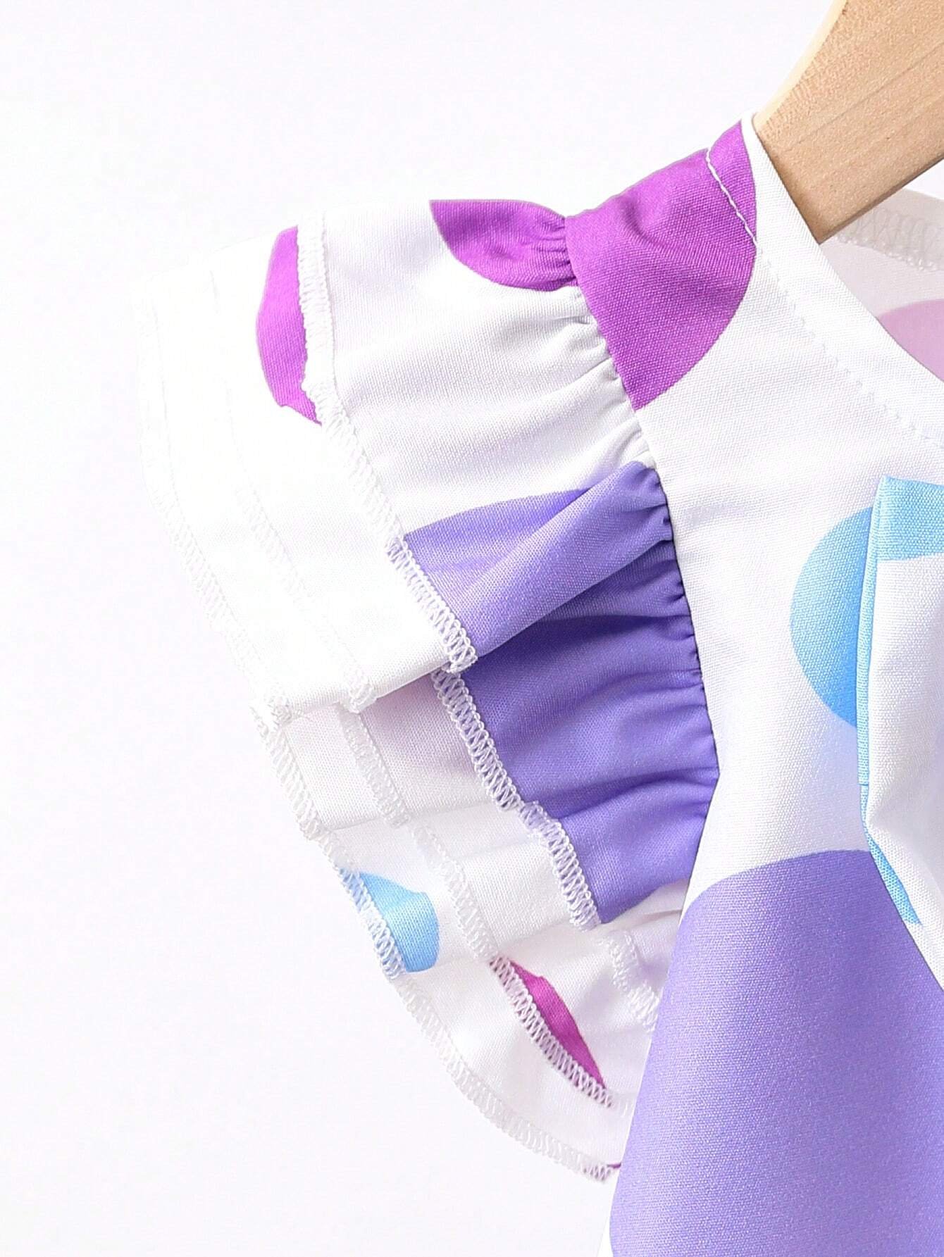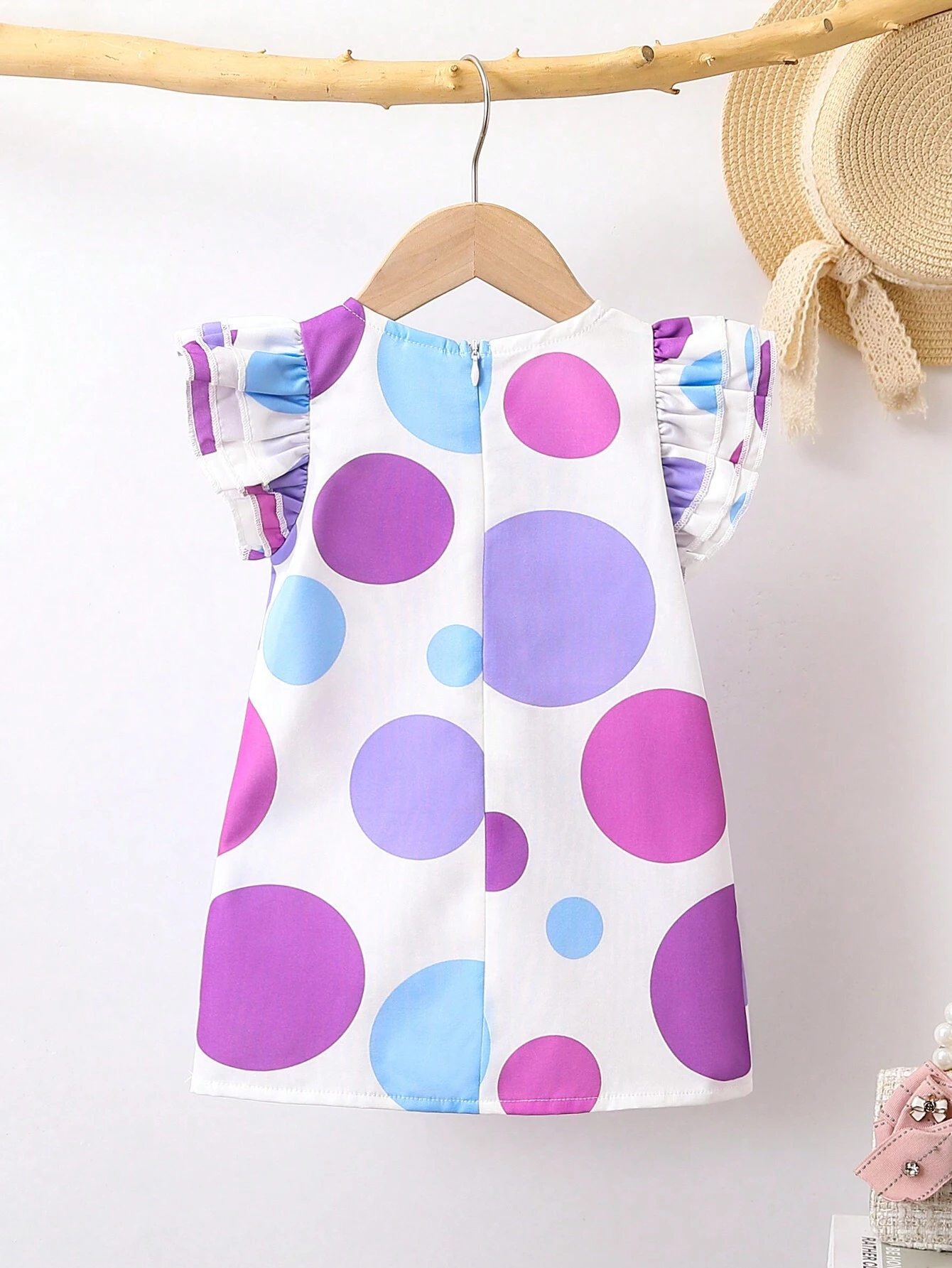 Vestido de tres capas con mangas onduladas con estampado de lunares