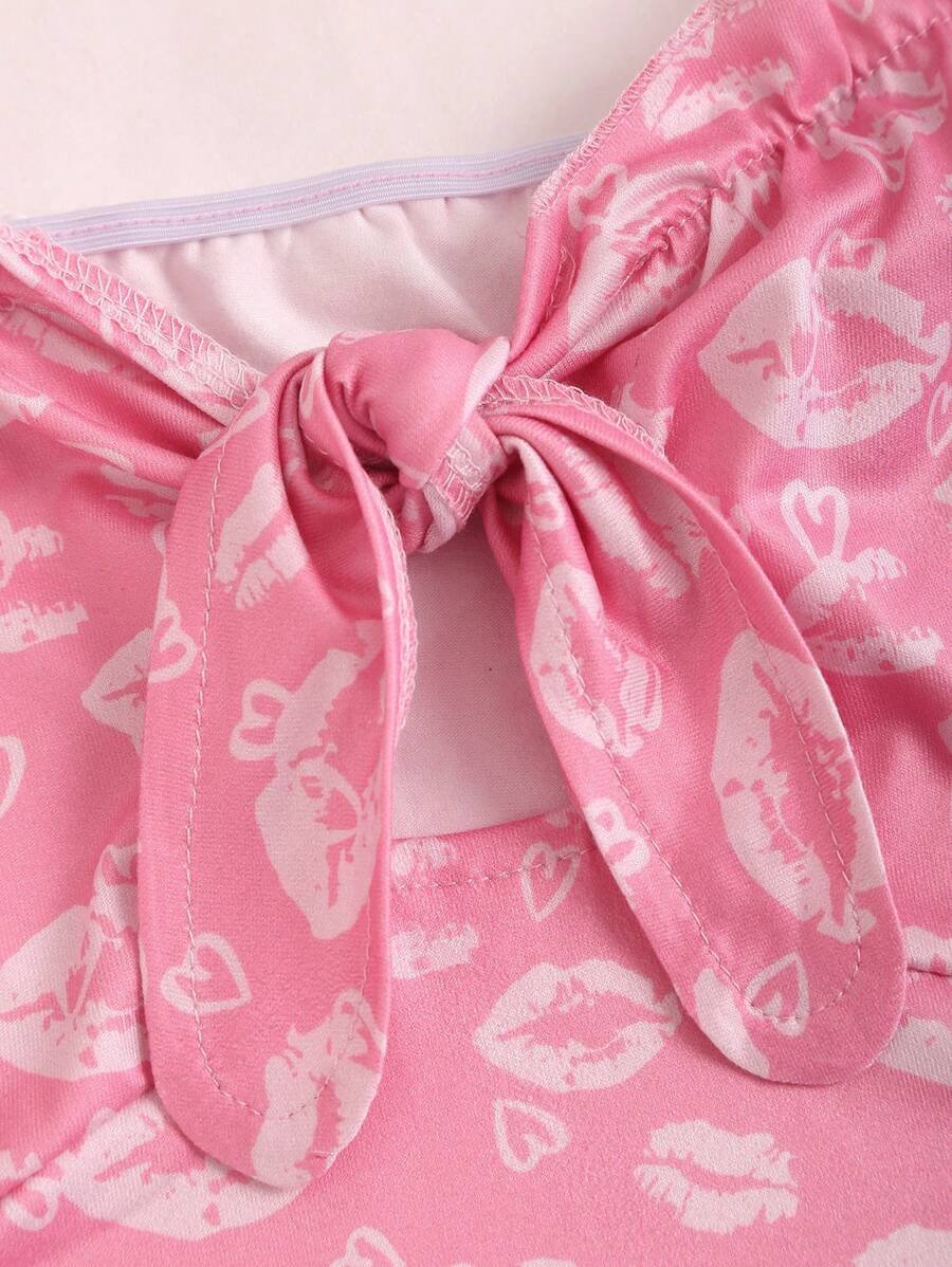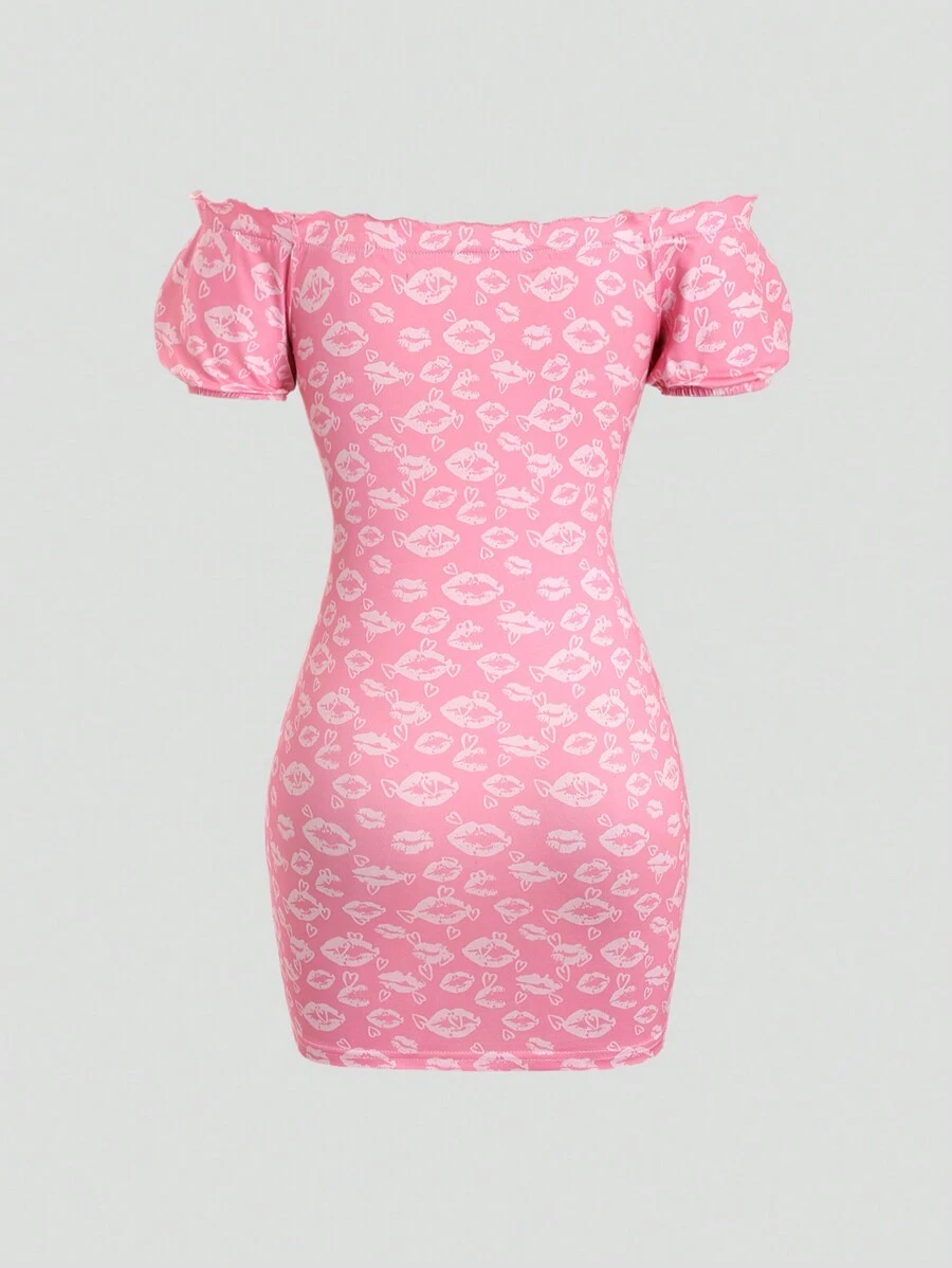 Vestido De Un Hombro Con Impresi?n De Labios Y Corazones