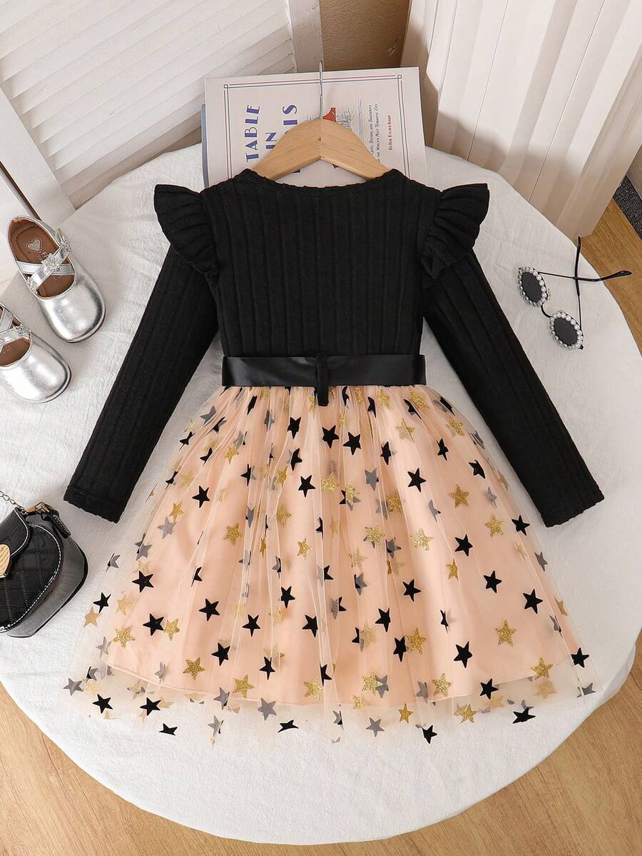 Vestido de unicolor con mangas de capa acanalada