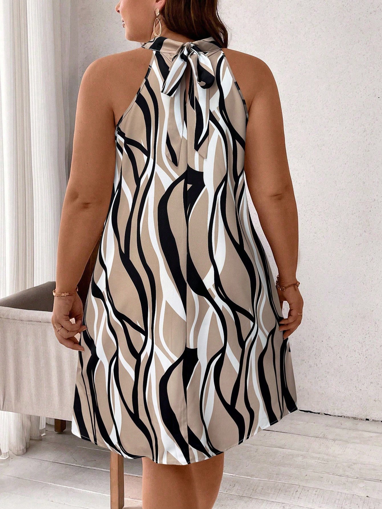 Vestido con estampado floral ribete con fleco de manga farol cruzado con nudo lateral