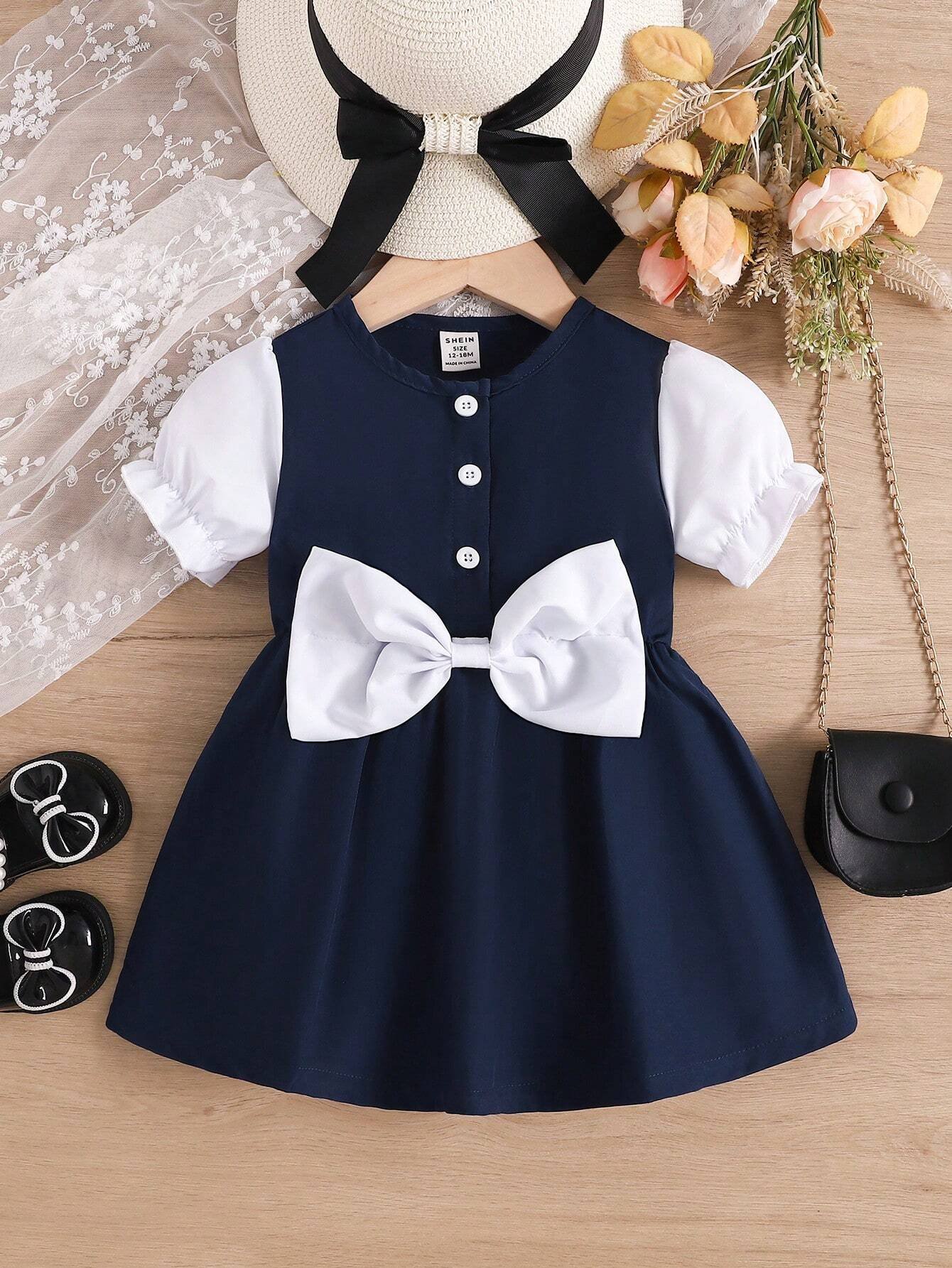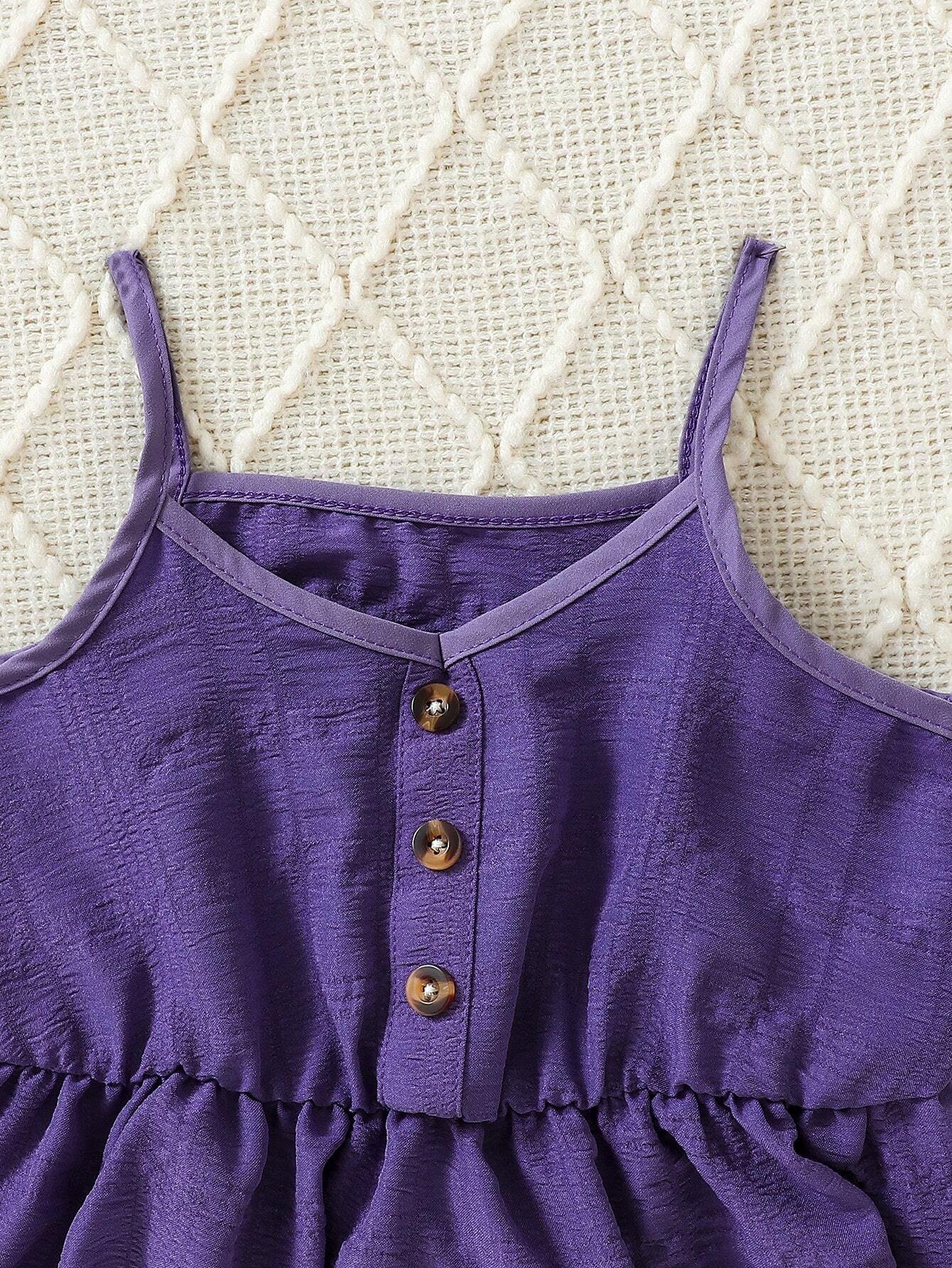 Vestido de verano primavera casual para beb? con unicolor, cierre de un solo bot?n