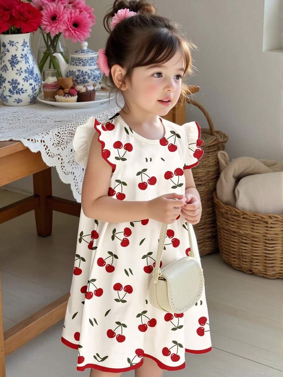 Vestido de verano sencillo con volantes en el dobladillo con estampados de corazones