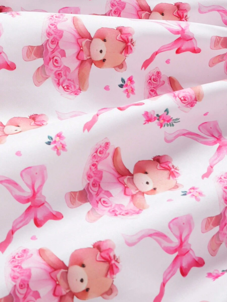 Vestido Decorativo Con Lazo Y Costura Con Estampado De Oso