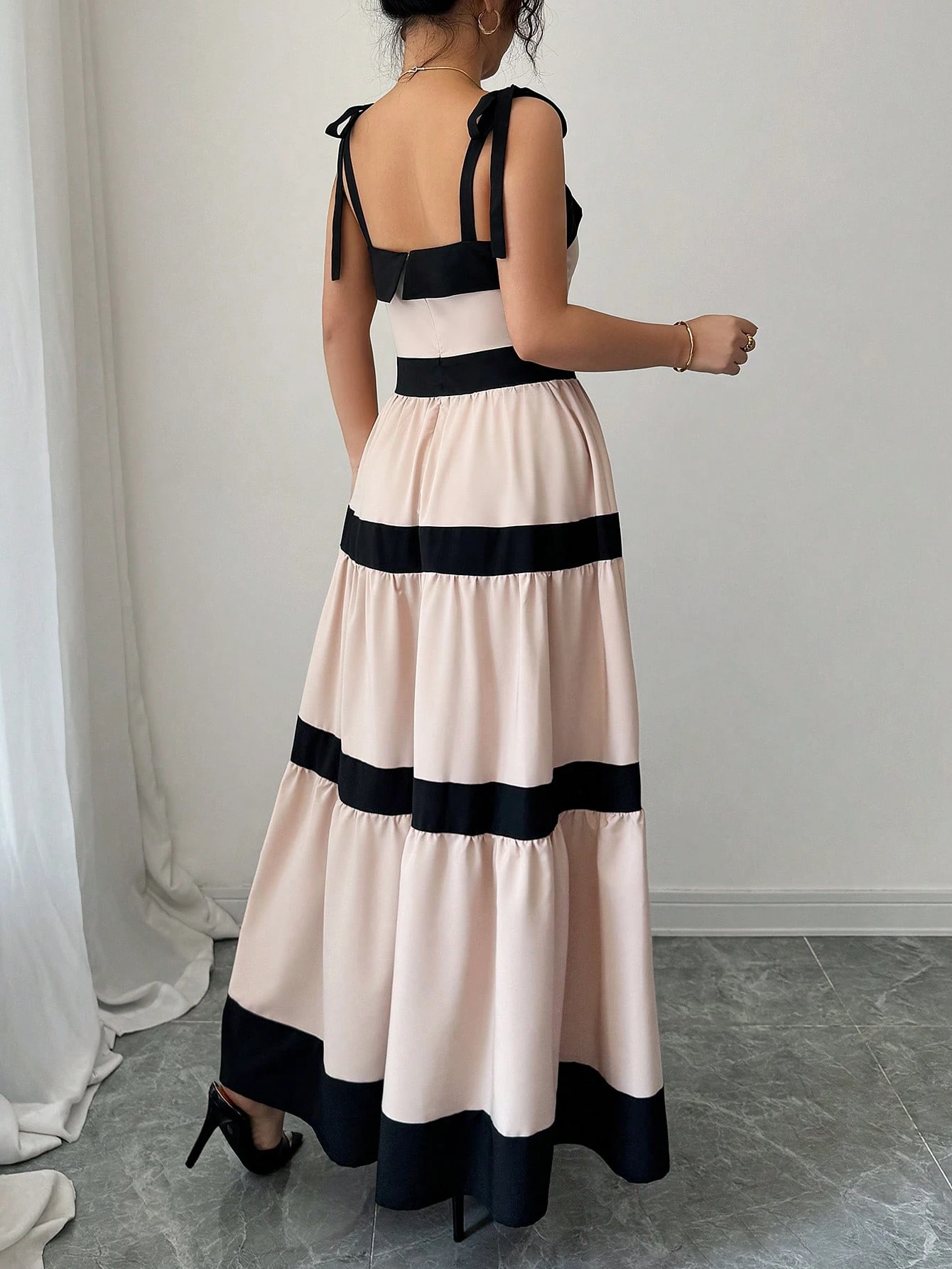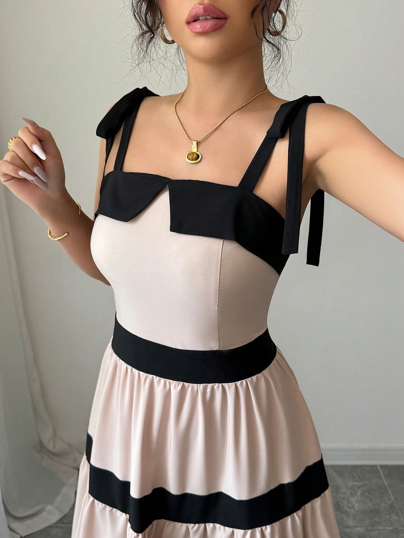 Vestido deslizante de línea A con empalmado de color de contraste