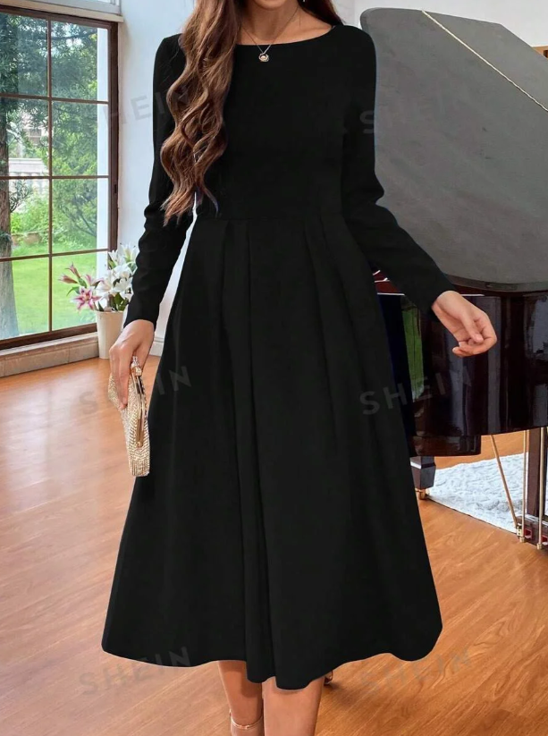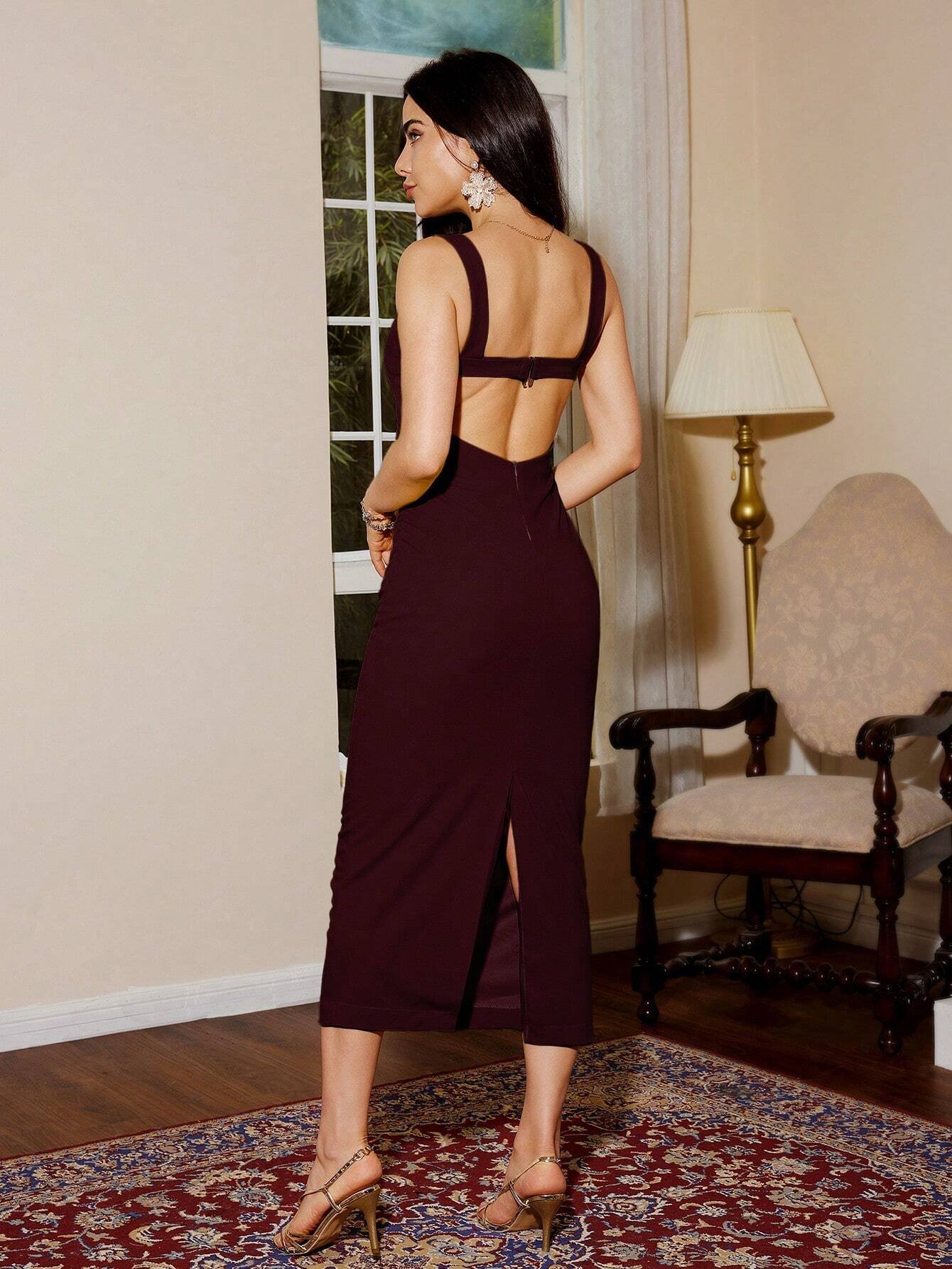 Vestido elegante ajustado con cuello cuadrado, cintura fruncida