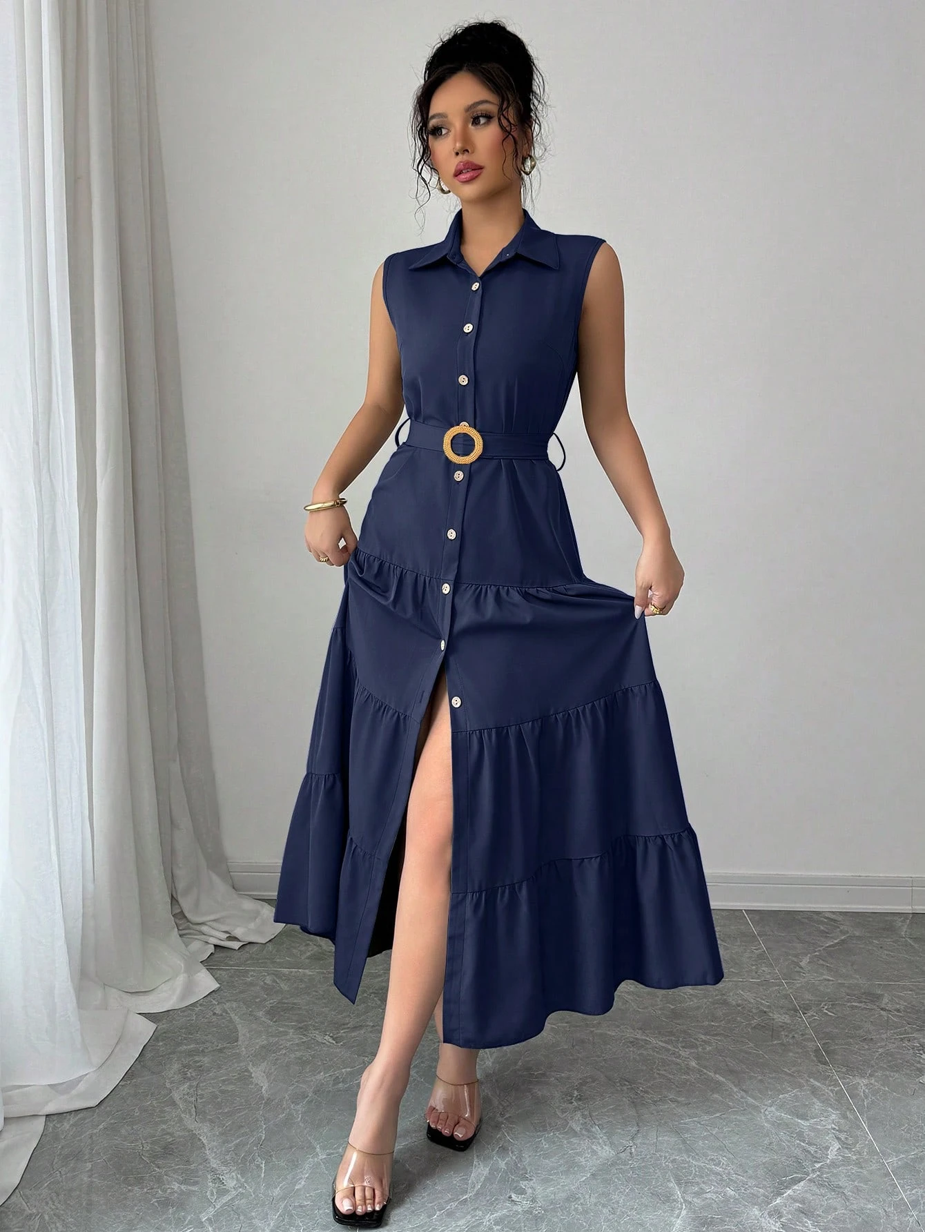 Vestido elegante con hombros descubiertos, adornado con perlas y volantes