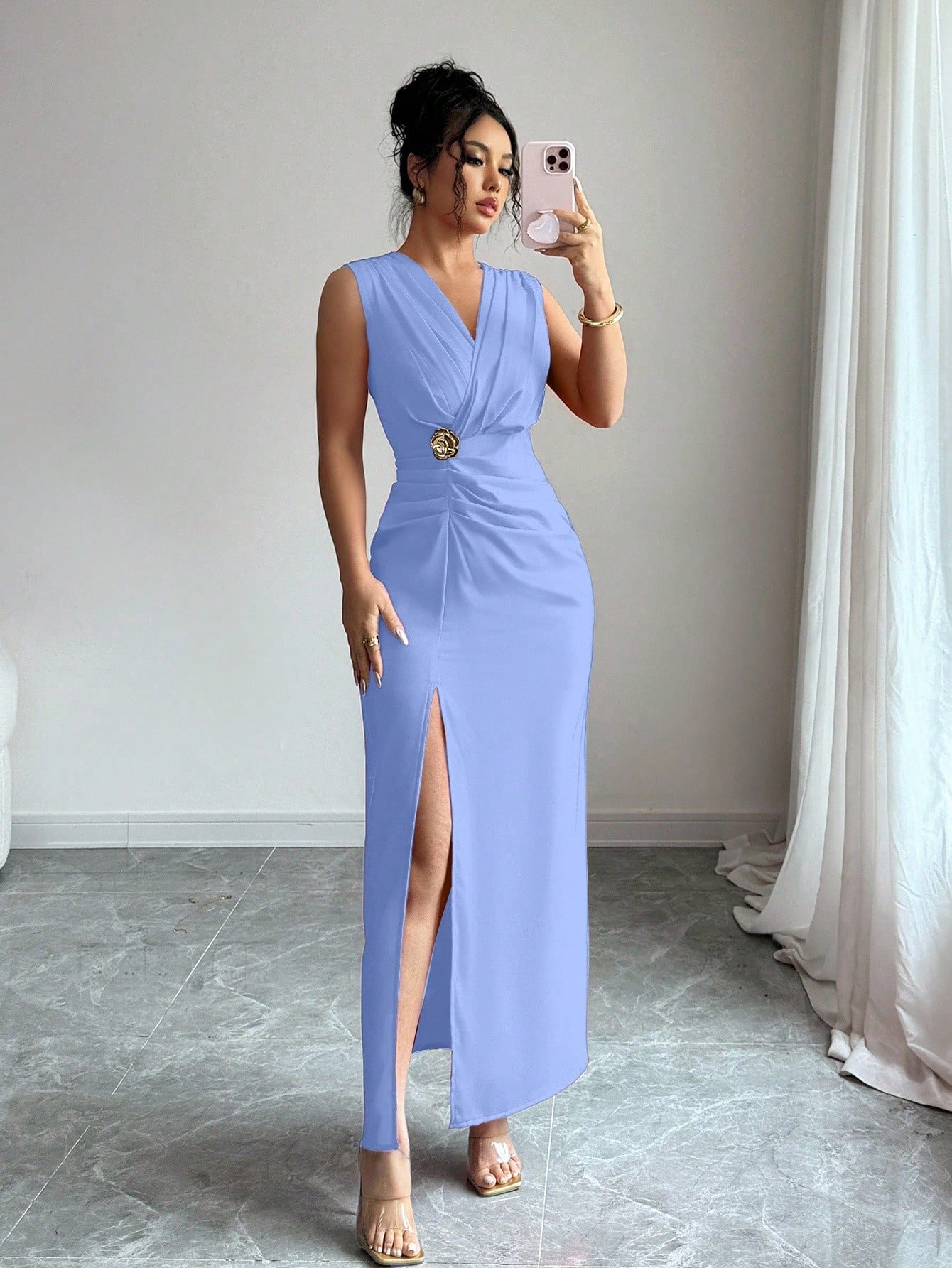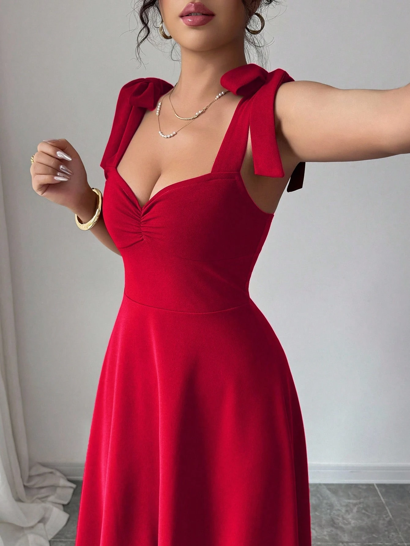 Vestido elegante con tirantes de espagueti y lazo en la cintura