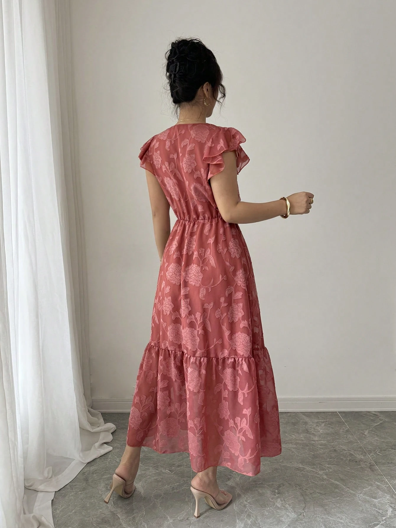 Vestido ajustado de cuello cruzado fruncido bajo con fruncido