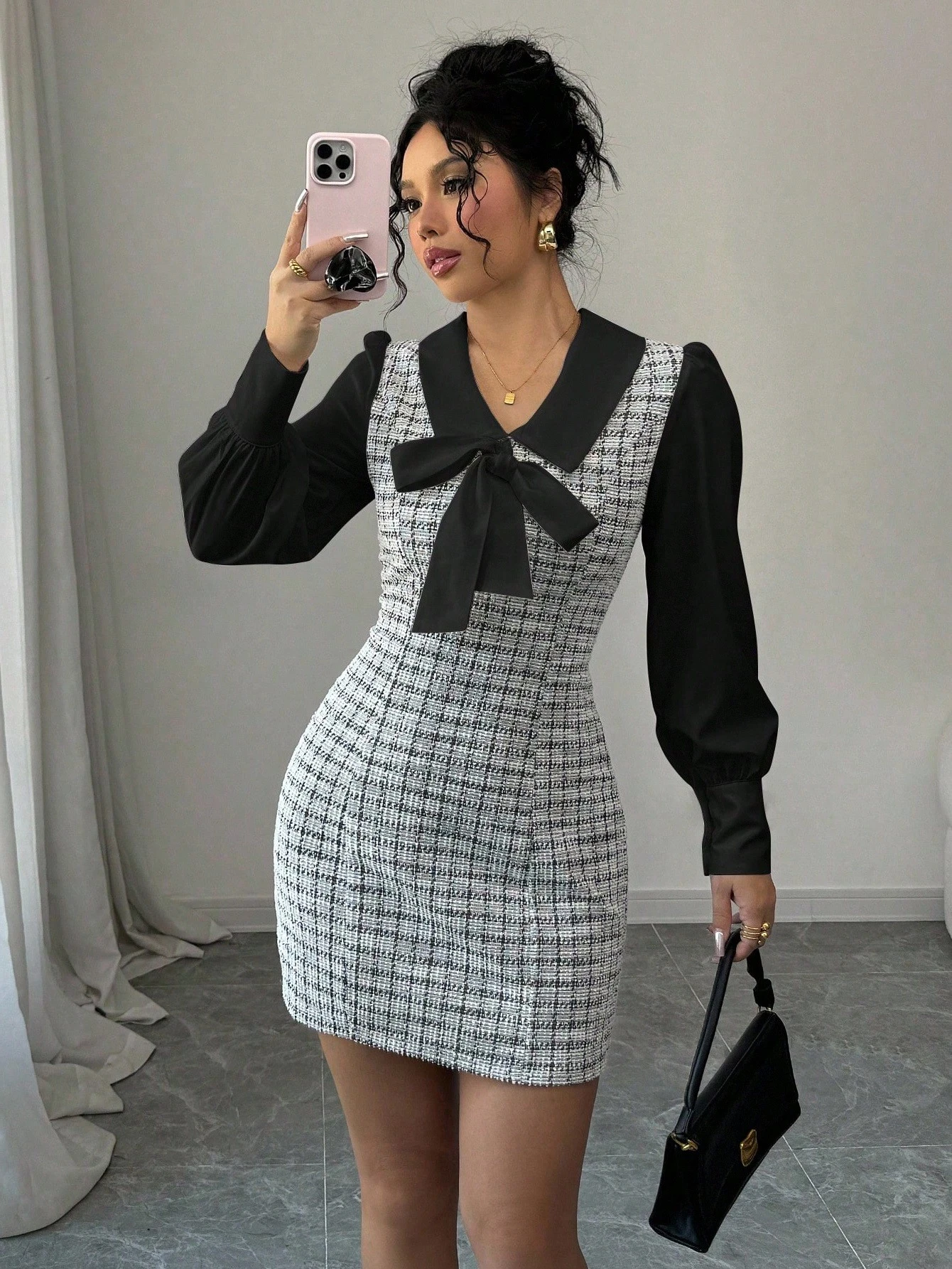 Vestido elegante y estilizador con cuello en V y cintura ceñida