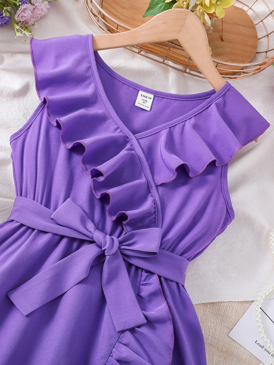 Vestido Envuelto Con Cintur?n Y Volantes Para Ni?a En La Preadolescencia