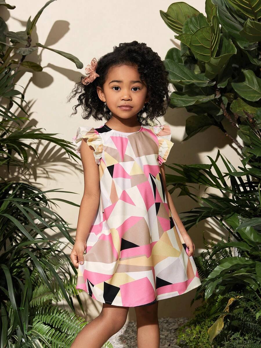 Vestido Estilo De Vacaciones De Moda Para Ni?as Con Patr?n Art?stico Geom?trico