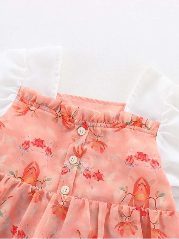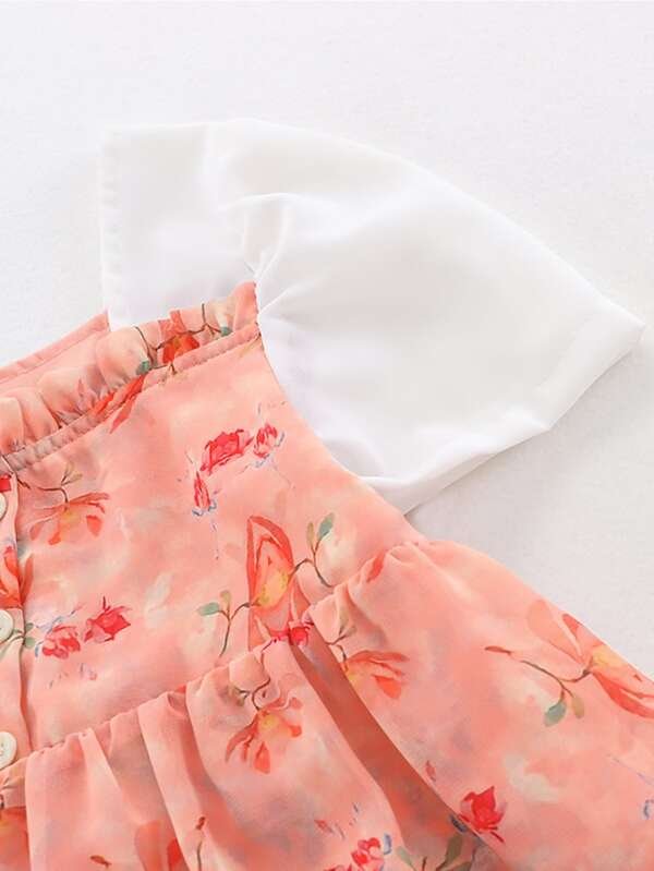 Vestido floral b?sico de algod?n para ni?as peque?as