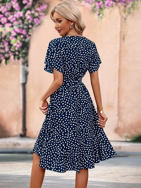 Vestido floral de manga obispo de muslo con abertura de cuello cuadrado