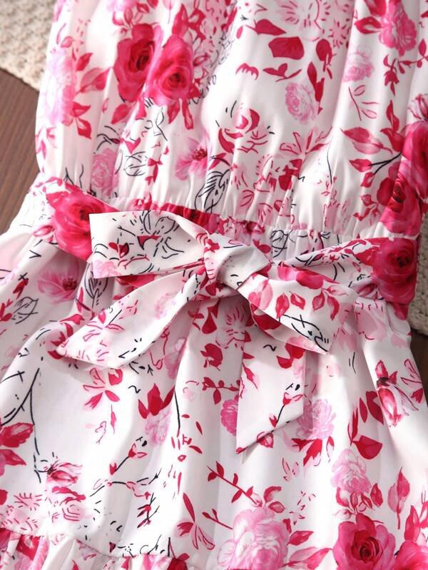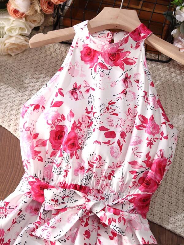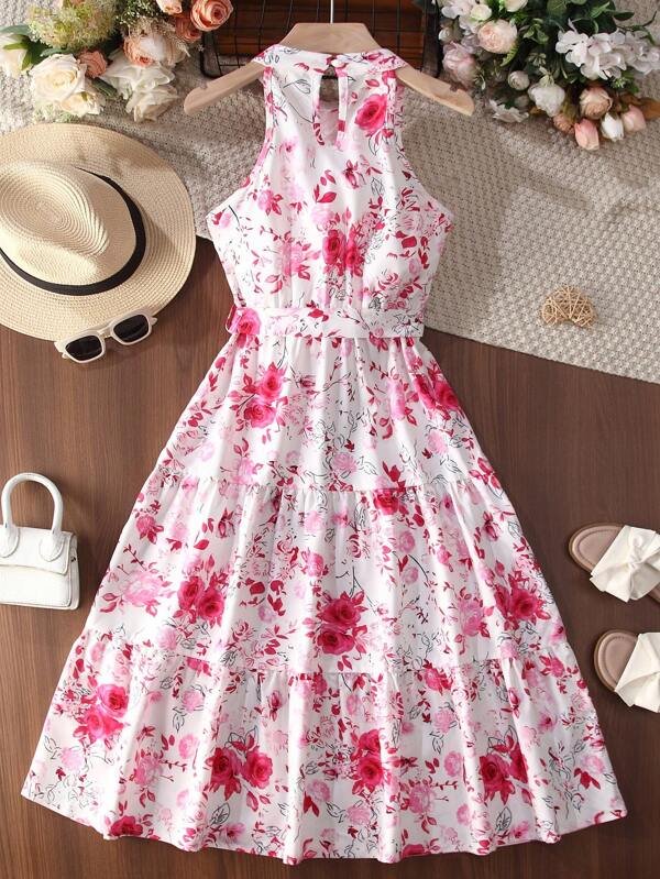 Vestido halter con estampado floral bajo con fruncido con cintur?n
