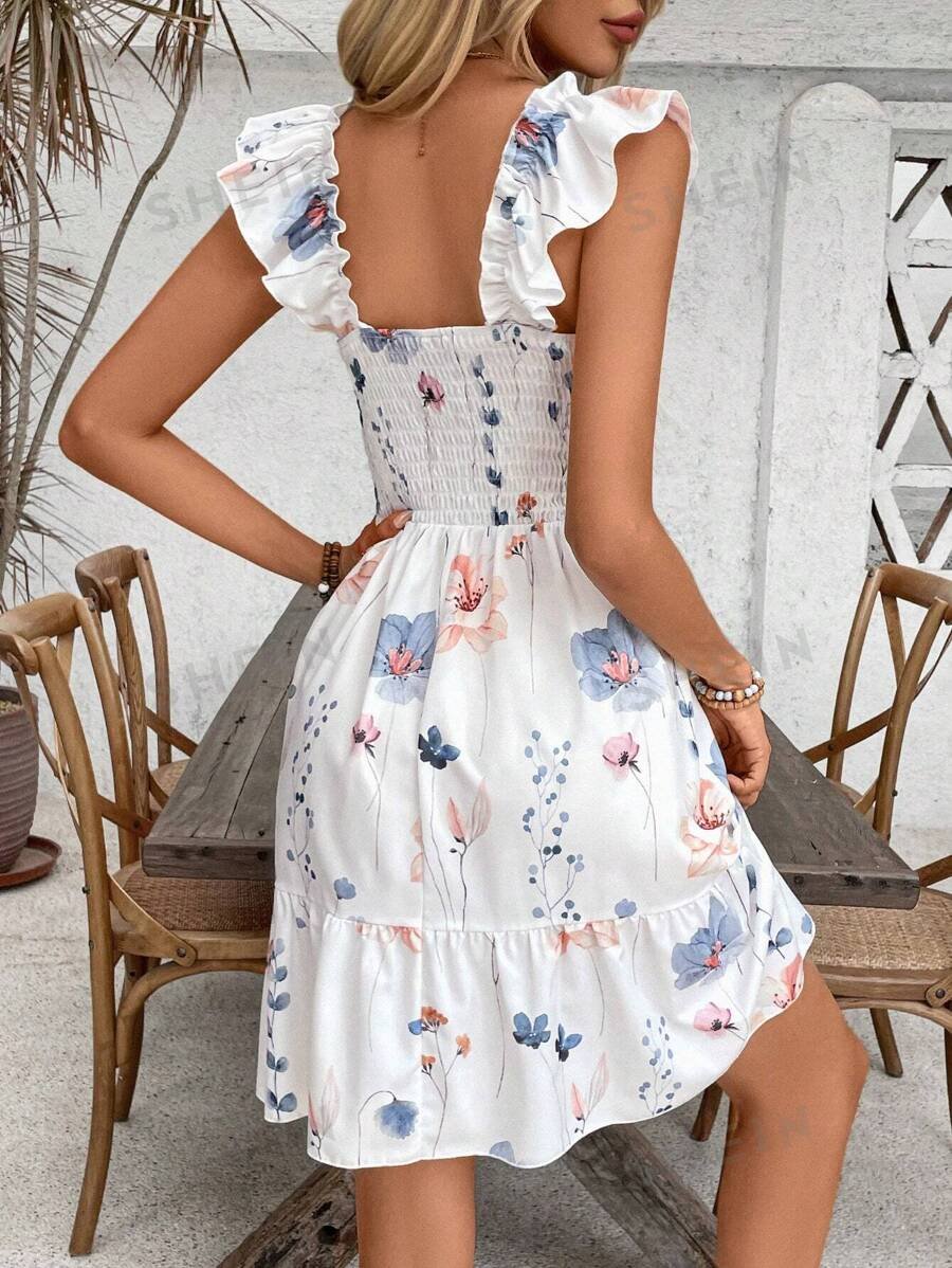 Vestido informal de verano para mujer con escote cuadrado y diseño de flores