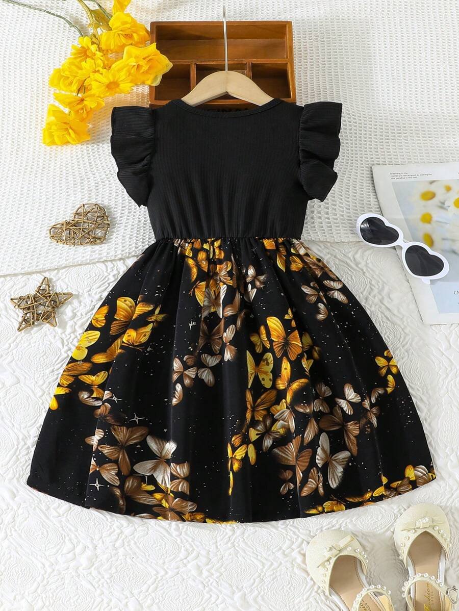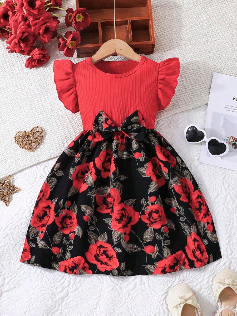 Vestido informal de verano para niña con mangas abullonadas, lazo