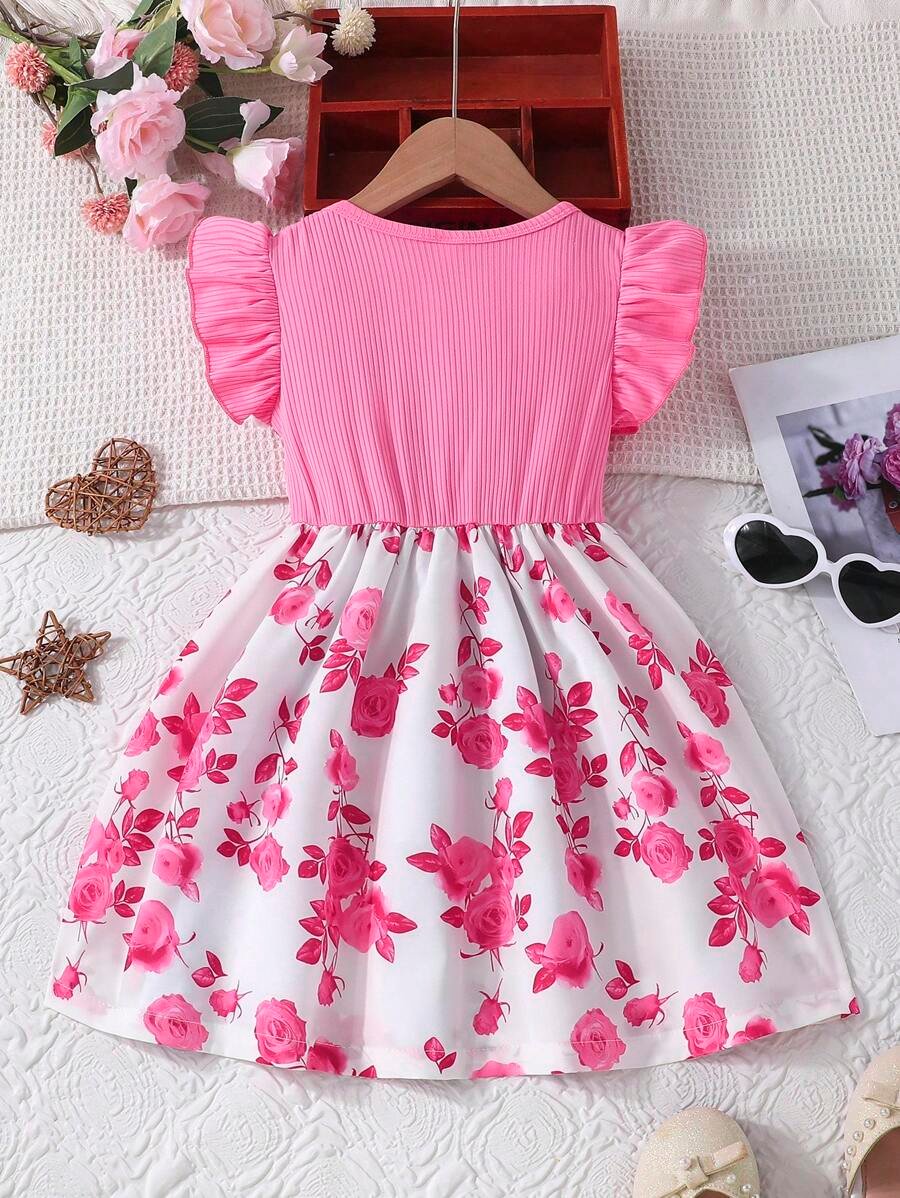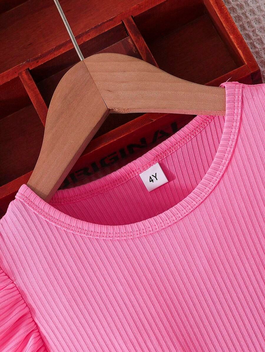 Vestido informal de verano para niña con mangas abullonadas, lazo