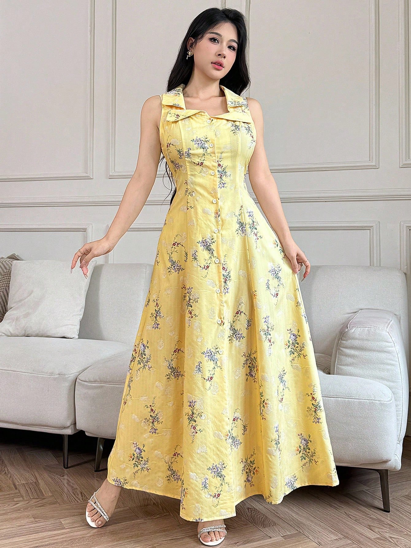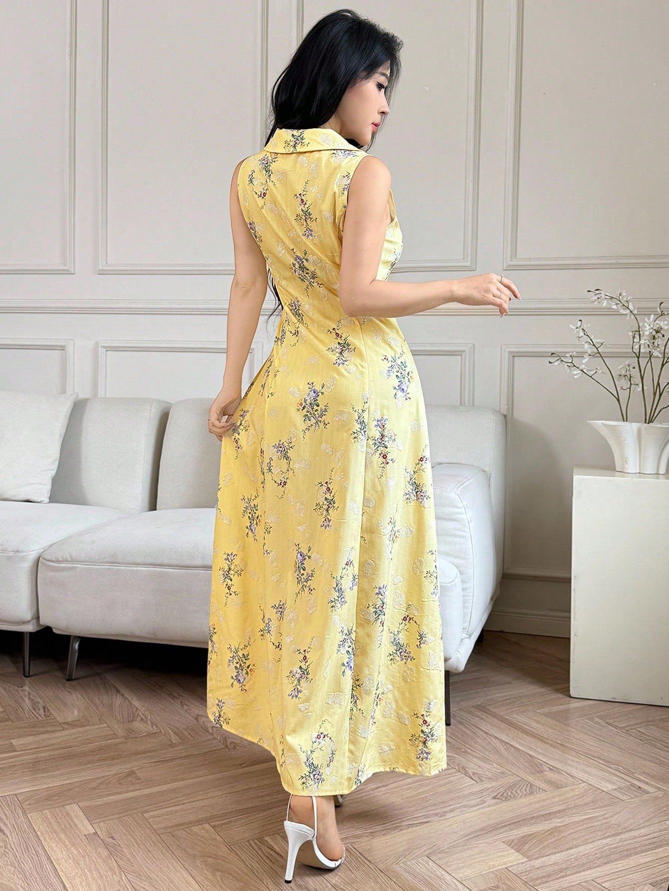 Vestido de tirantes unicolor fruncido de muslo con abertura de saten