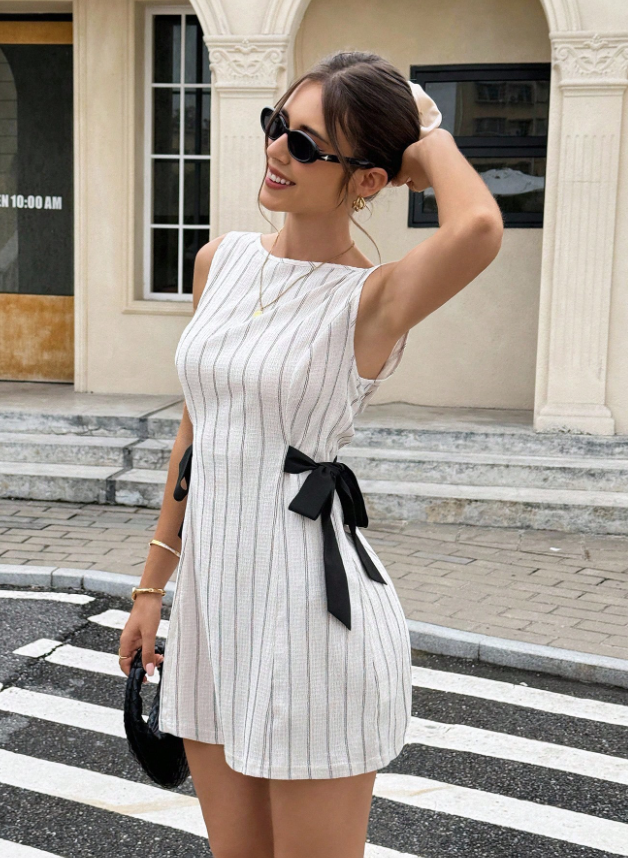 Vestido Camisero De Manga Corta De Verano De Cintura Alta