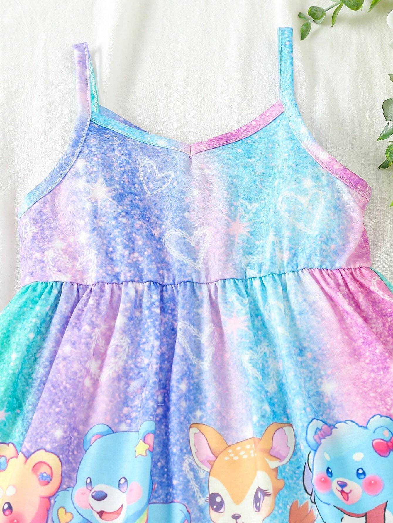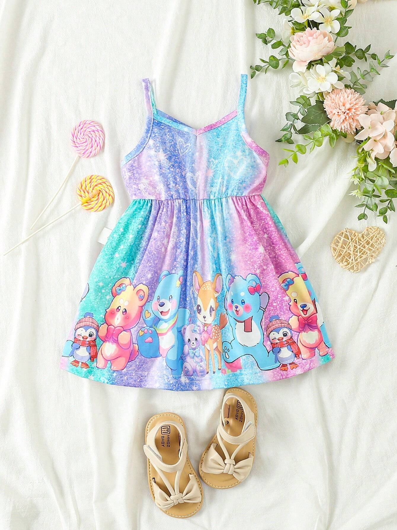 Vestido lindo con tiras con estampado de caricaturas en gradiente de color